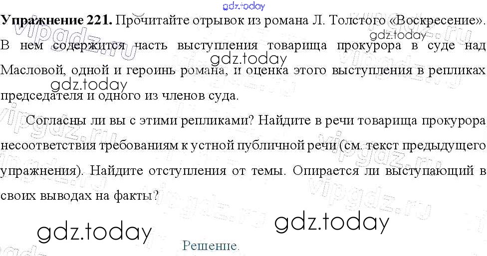 Ответы к Решение к упражнениям 221 Учебнику по Русскому языку для 9 класса Тростенцова, Ладыженская Просвещение 2014