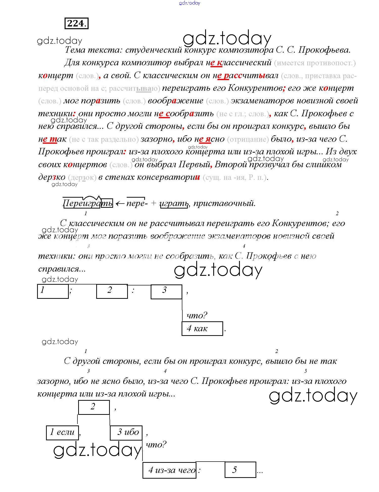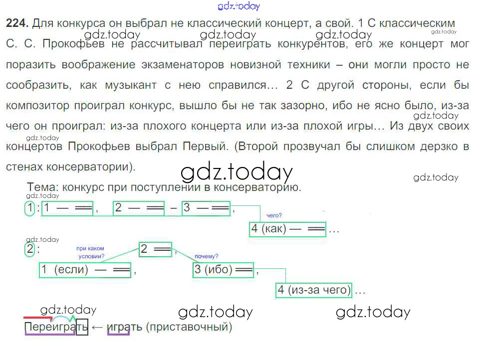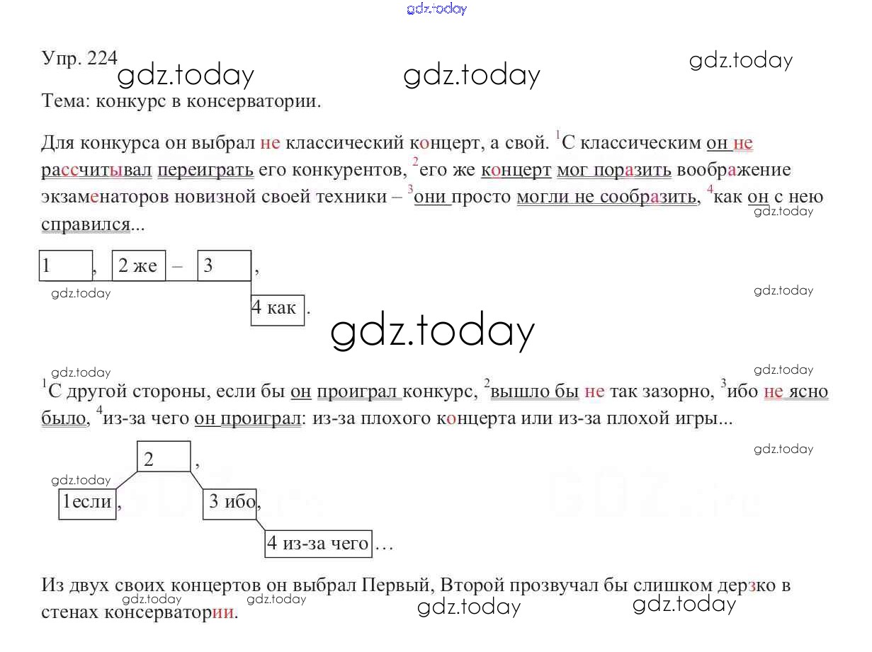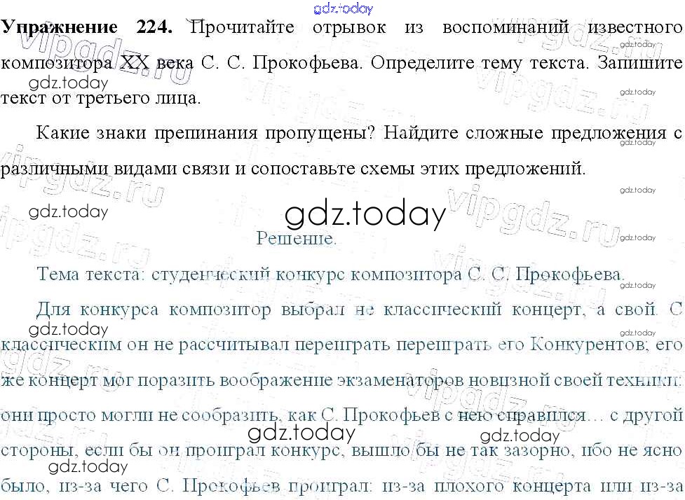 На страницах сайта gdz.today вы найдете учебный и вспомогательный материал, направленный на улучшения знаний школьной программы. ГДЗ - онлайн мир знаний Решение к упражнениям 224 Учебнику по Русскому языку для 9 класса Тростенцова, Ладыженская Просвещение 2014