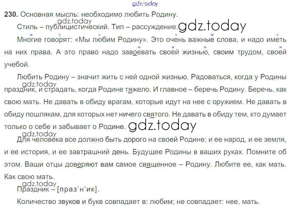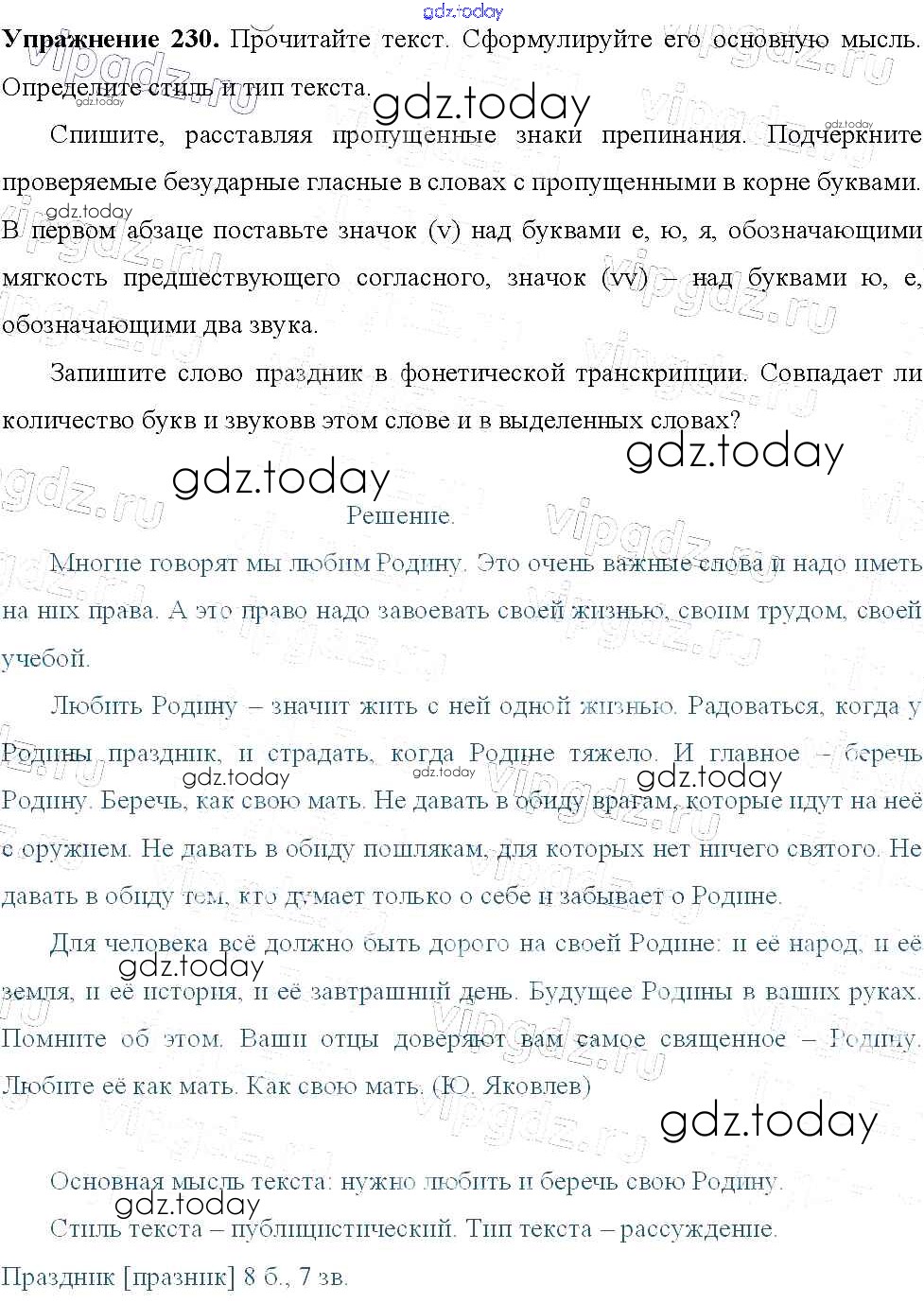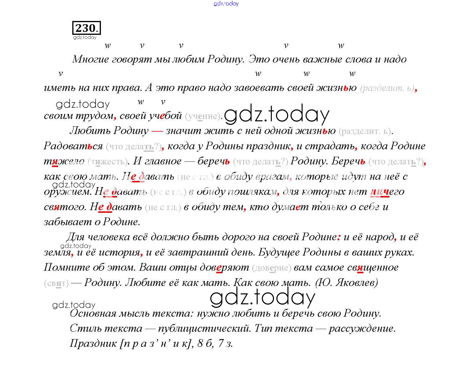 На страницах сайта gdz.today вы найдете учебный и вспомогательный материал, направленный на улучшения знаний школьной программы. ГДЗ - онлайн мир знаний Решение к упражнениям 230 Учебнику по Русскому языку для 9 класса Тростенцова, Ладыженская Просвещение 2014