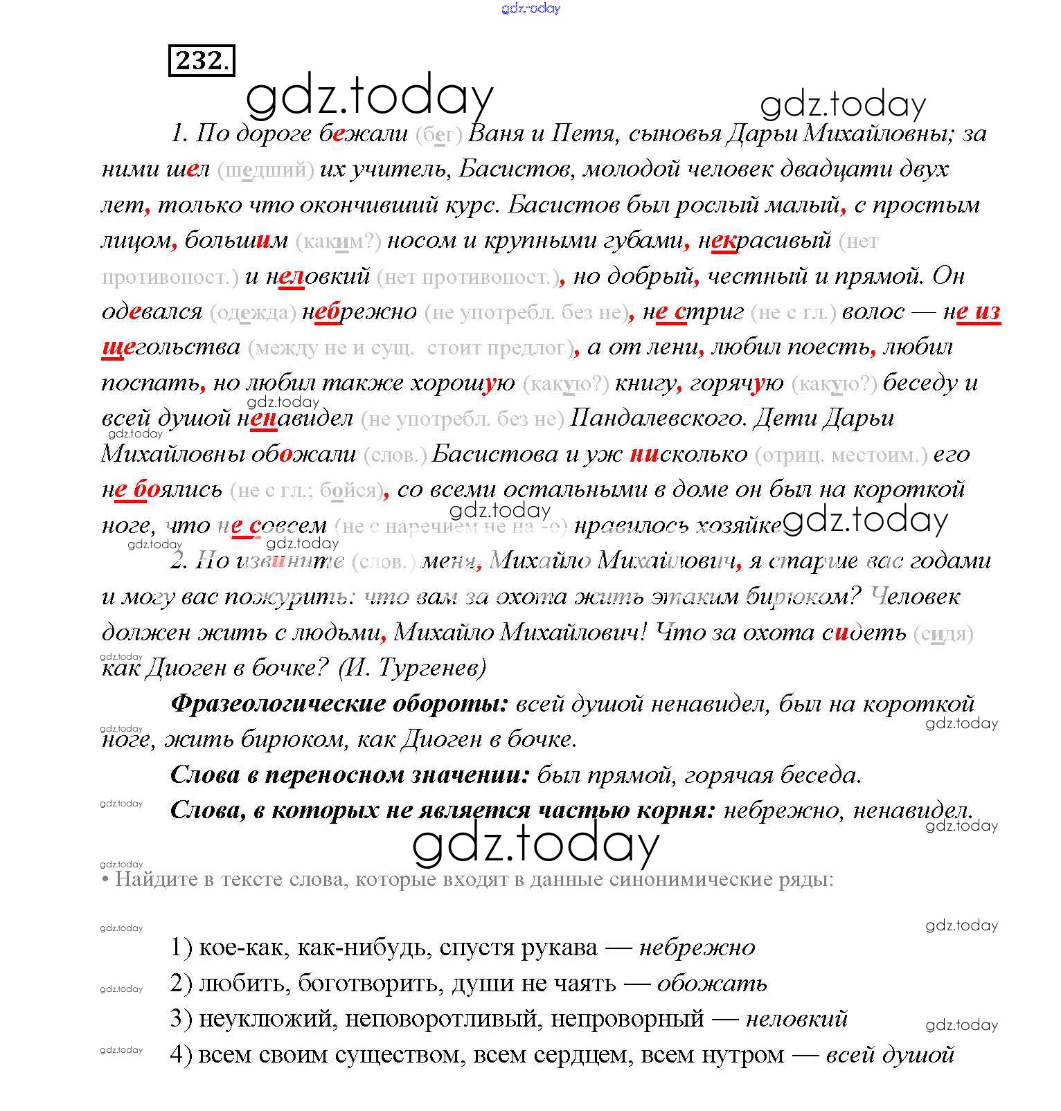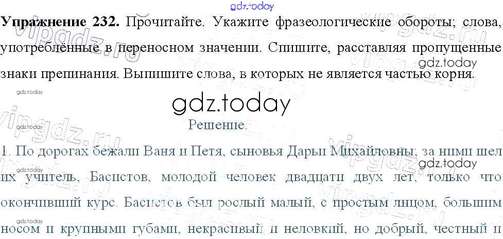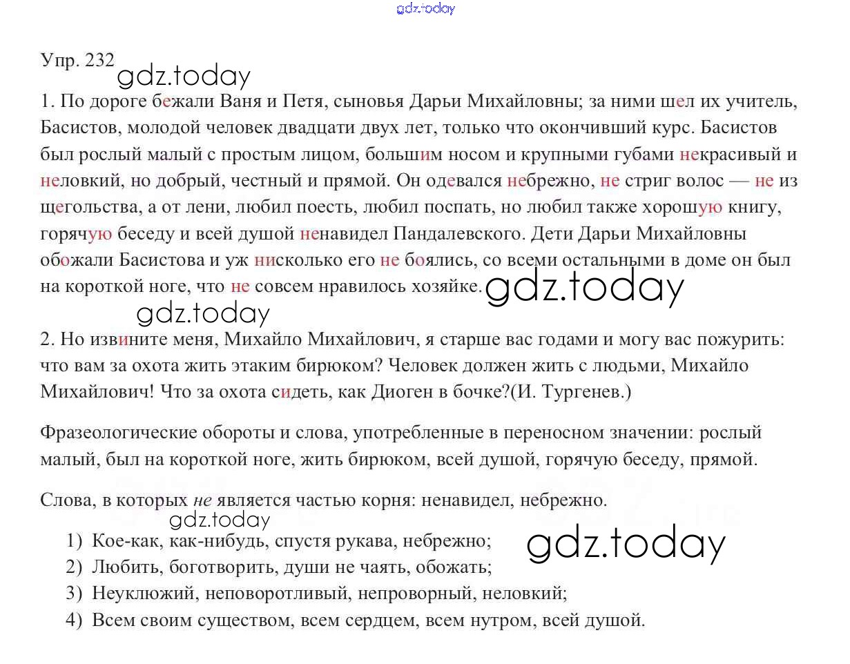 На страницах сайта gdz.today вы найдете учебный и вспомогательный материал, направленный на улучшения знаний школьной программы. ГДЗ - онлайн мир знаний Решение к упражнениям 232 Учебнику по Русскому языку для 9 класса Тростенцова, Ладыженская Просвещение 2014