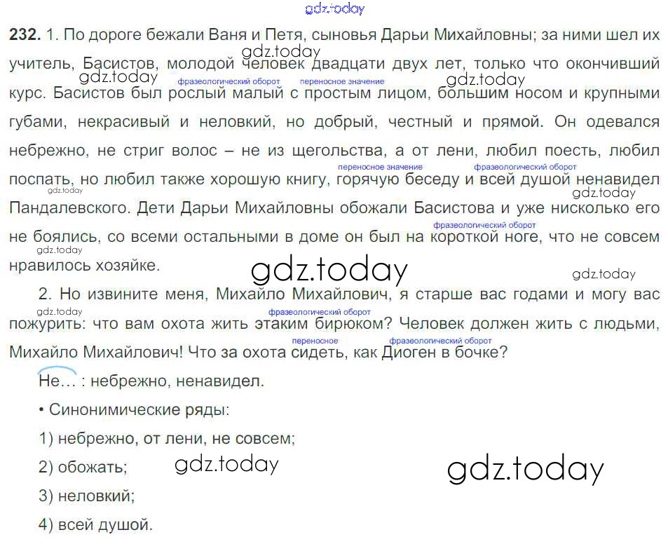 Ответы к Решение к упражнениям 232 Учебнику по Русскому языку для 9 класса Тростенцова, Ладыженская Просвещение 2014