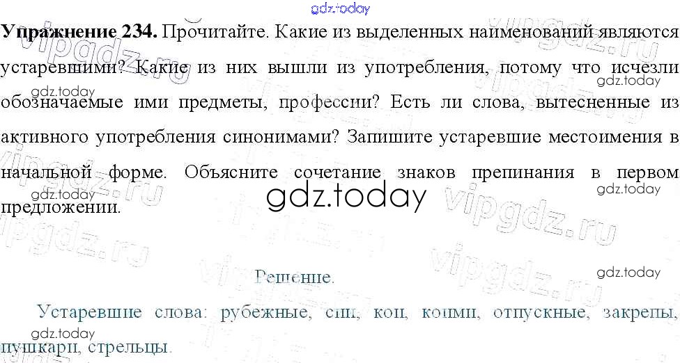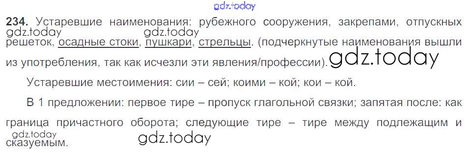 Ответы к Решение к упражнениям 234 Учебнику по Русскому языку для 9 класса Тростенцова, Ладыженская Просвещение 2014