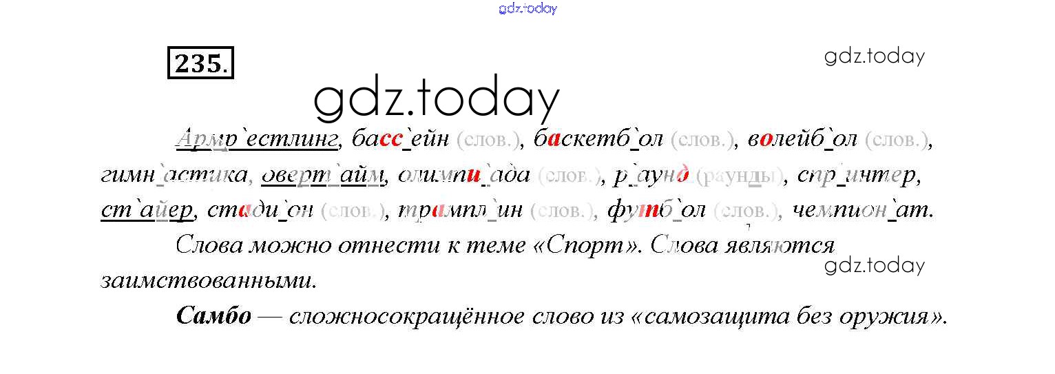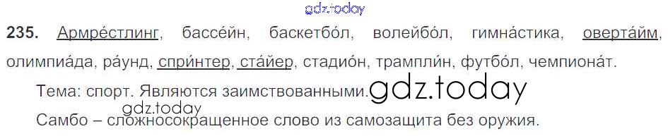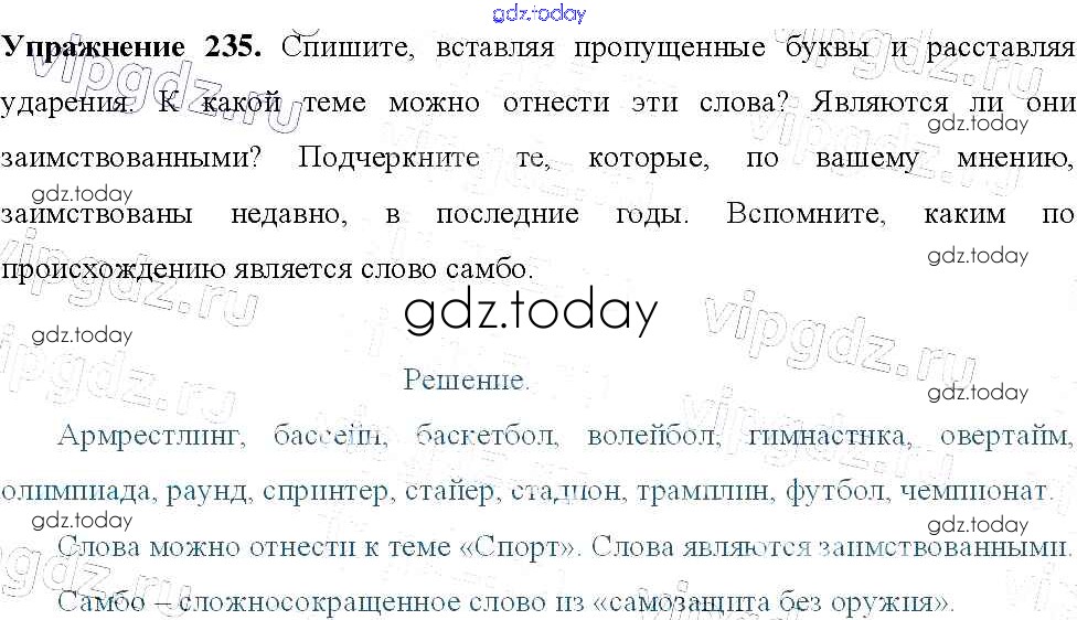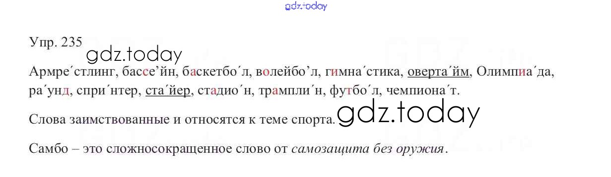 На страницах сайта gdz.today вы найдете учебный и вспомогательный материал, направленный на улучшения знаний школьной программы. ГДЗ - онлайн мир знаний Решение к упражнениям 235 Учебнику по Русскому языку для 9 класса Тростенцова, Ладыженская Просвещение 2014