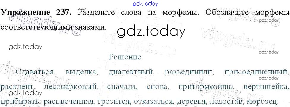 На страницах сайта gdz.today вы найдете учебный и вспомогательный материал, направленный на улучшения знаний школьной программы. ГДЗ - онлайн мир знаний Решение к упражнениям 237 Учебнику по Русскому языку для 9 класса Тростенцова, Ладыженская Просвещение 2014