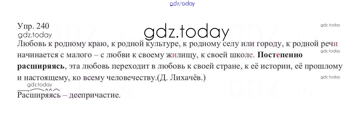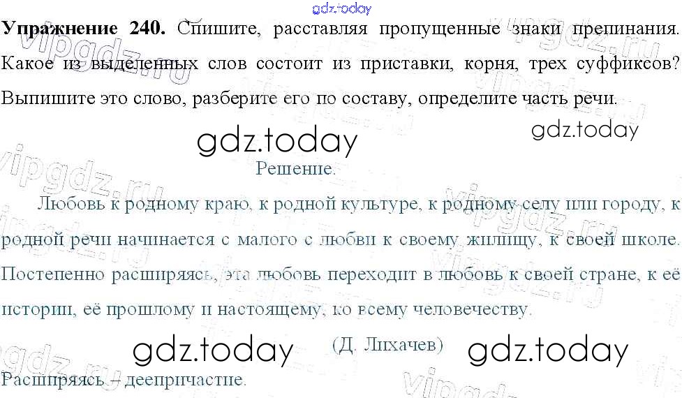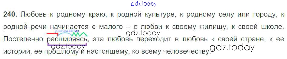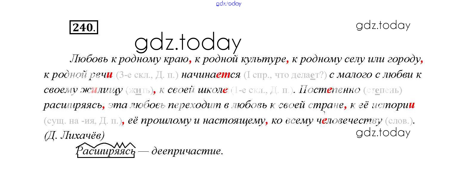 На страницах сайта gdz.today вы найдете учебный и вспомогательный материал, направленный на улучшения знаний школьной программы. ГДЗ - онлайн мир знаний Решение к упражнениям 240 Учебнику по Русскому языку для 9 класса Тростенцова, Ладыженская Просвещение 2014