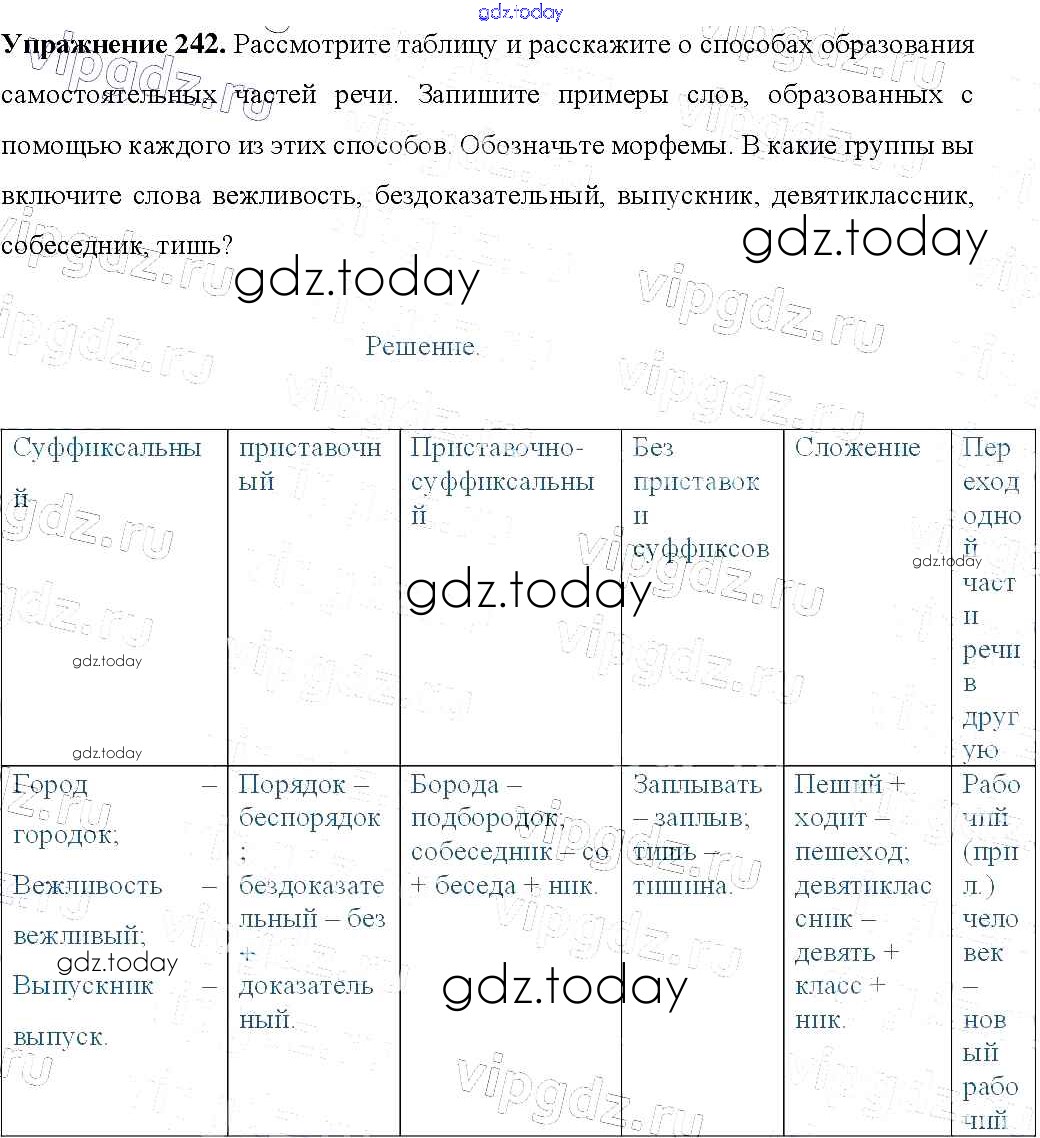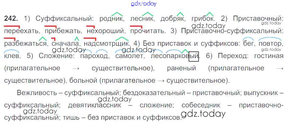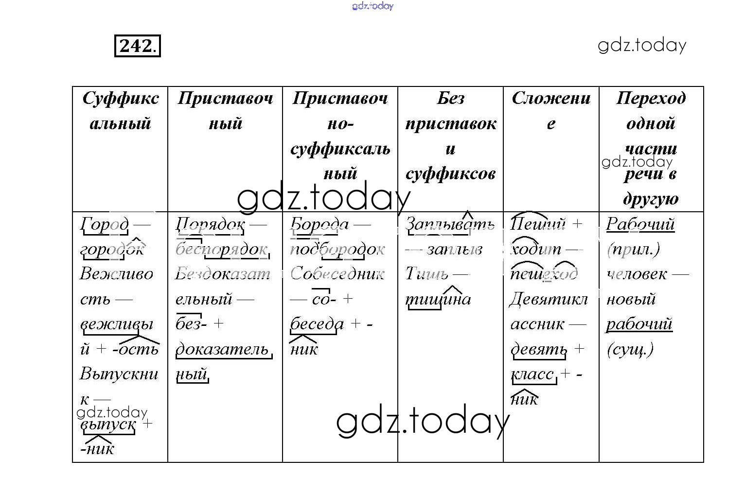 На страницах сайта gdz.today вы найдете учебный и вспомогательный материал, направленный на улучшения знаний школьной программы. ГДЗ - онлайн мир знаний Решение к упражнениям  242 Учебнику по Русскому языку для 9 класса Тростенцова, Ладыженская  Просвещение  2014