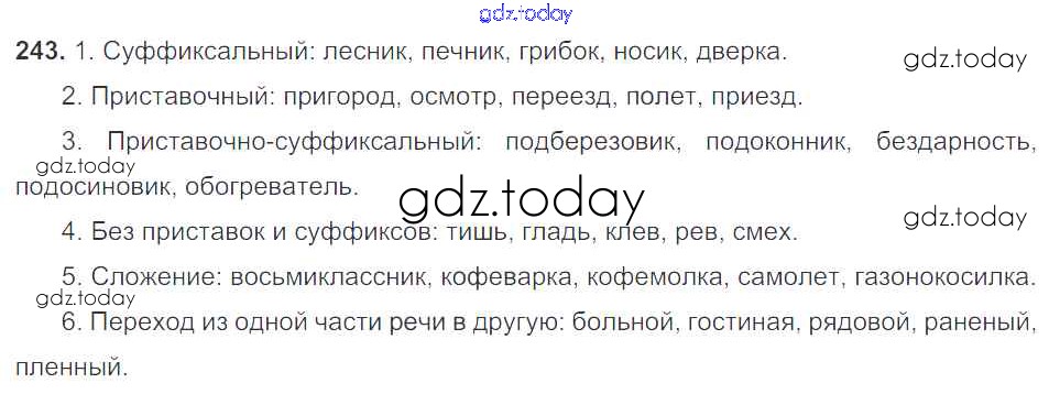 На страницах сайта gdz.today вы найдете учебный и вспомогательный материал, направленный на улучшения знаний школьной программы. ГДЗ - онлайн мир знаний Решение к упражнениям 243 Учебнику по Русскому языку для 9 класса Тростенцова, Ладыженская Просвещение 2014