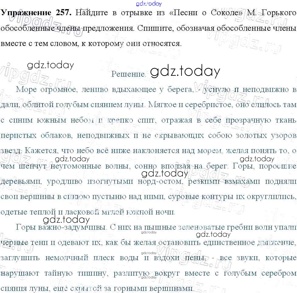 На страницах сайта gdz.today вы найдете учебный и вспомогательный материал, направленный на улучшения знаний школьной программы. ГДЗ - онлайн мир знаний Решение к упражнениям 257 Учебнику по Русскому языку для 9 класса Тростенцова, Ладыженская Просвещение 2014