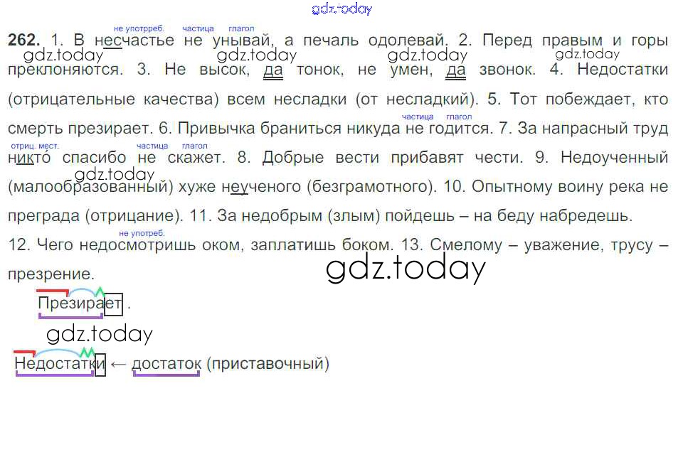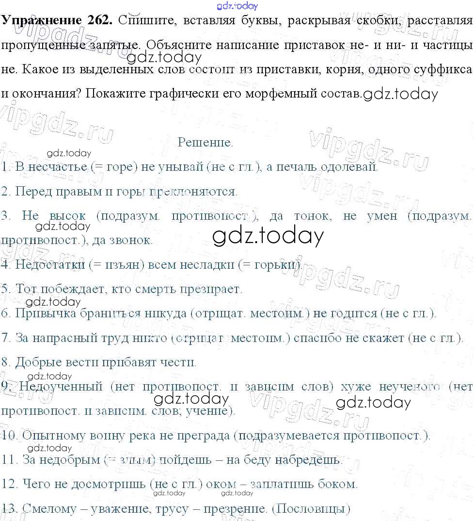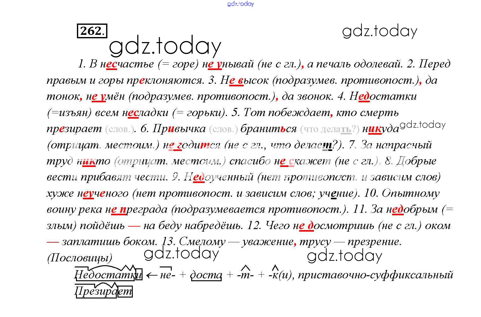 На страницах сайта gdz.today вы найдете учебный и вспомогательный материал, направленный на улучшения знаний школьной программы. ГДЗ - онлайн мир знаний Решение к упражнениям 262 Учебнику по Русскому языку для 9 класса Тростенцова, Ладыженская Просвещение 2014
