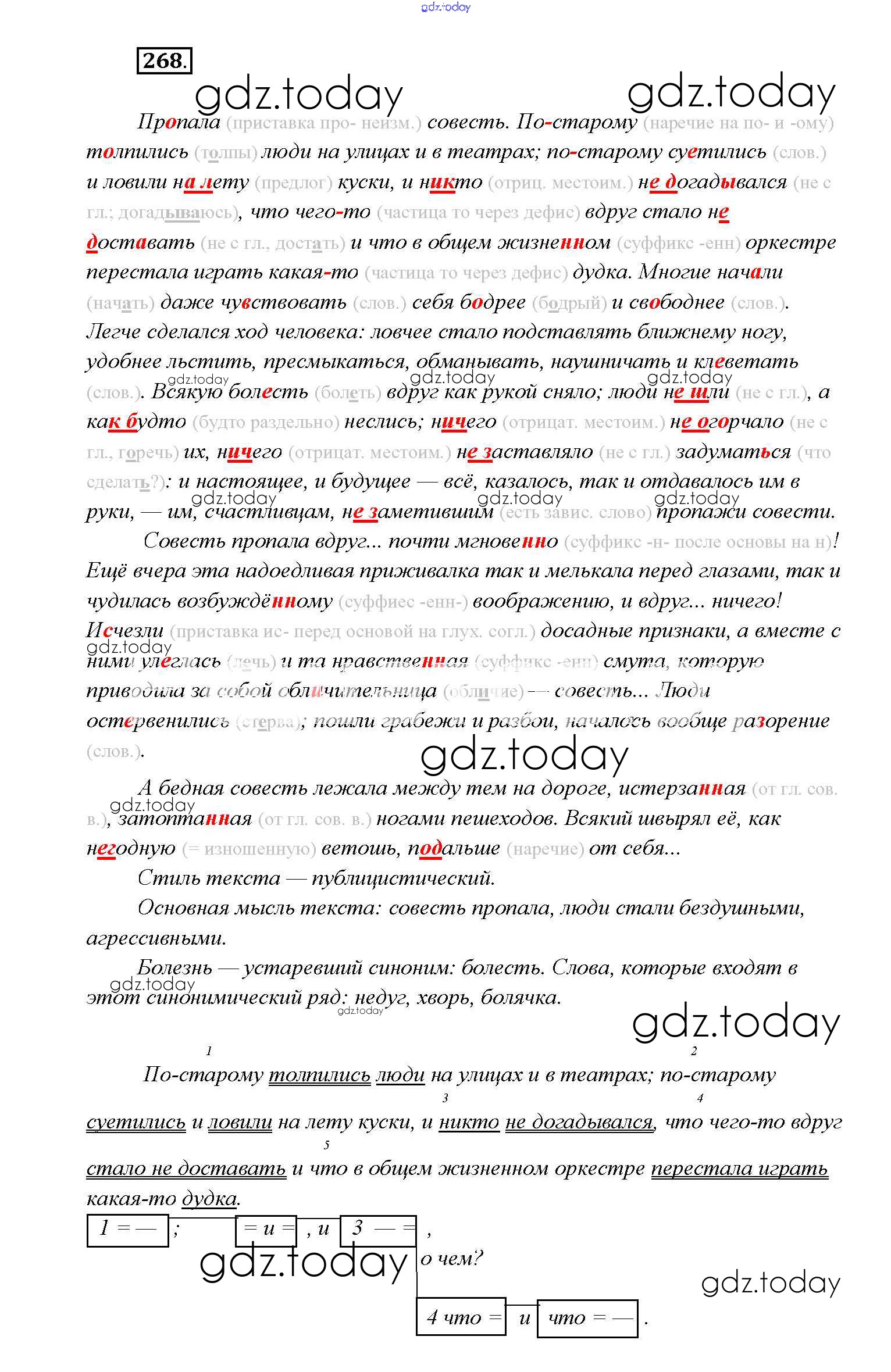На страницах сайта gdz.today вы найдете учебный и вспомогательный материал, направленный на улучшения знаний школьной программы. ГДЗ - онлайн мир знаний Решение к упражнениям 268 Учебнику по Русскому языку для 9 класса Тростенцова, Ладыженская Просвещение 2014