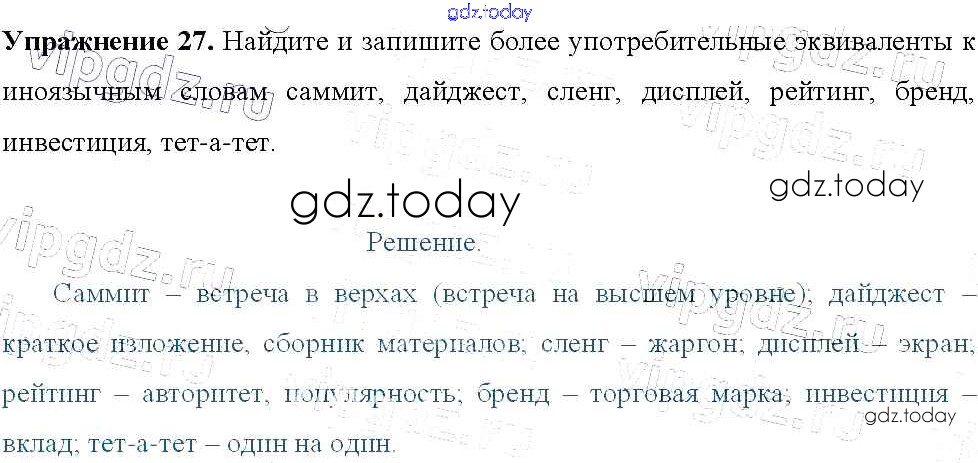 Ответы к Решение к упражнениям 27 Учебнику по Русскому языку для 9 класса Тростенцова, Ладыженская Просвещение 2014