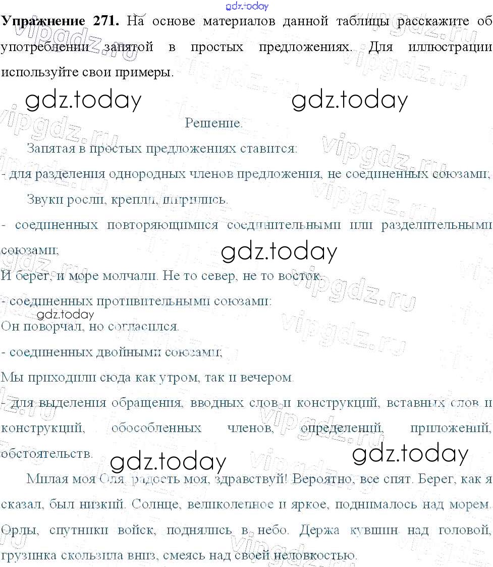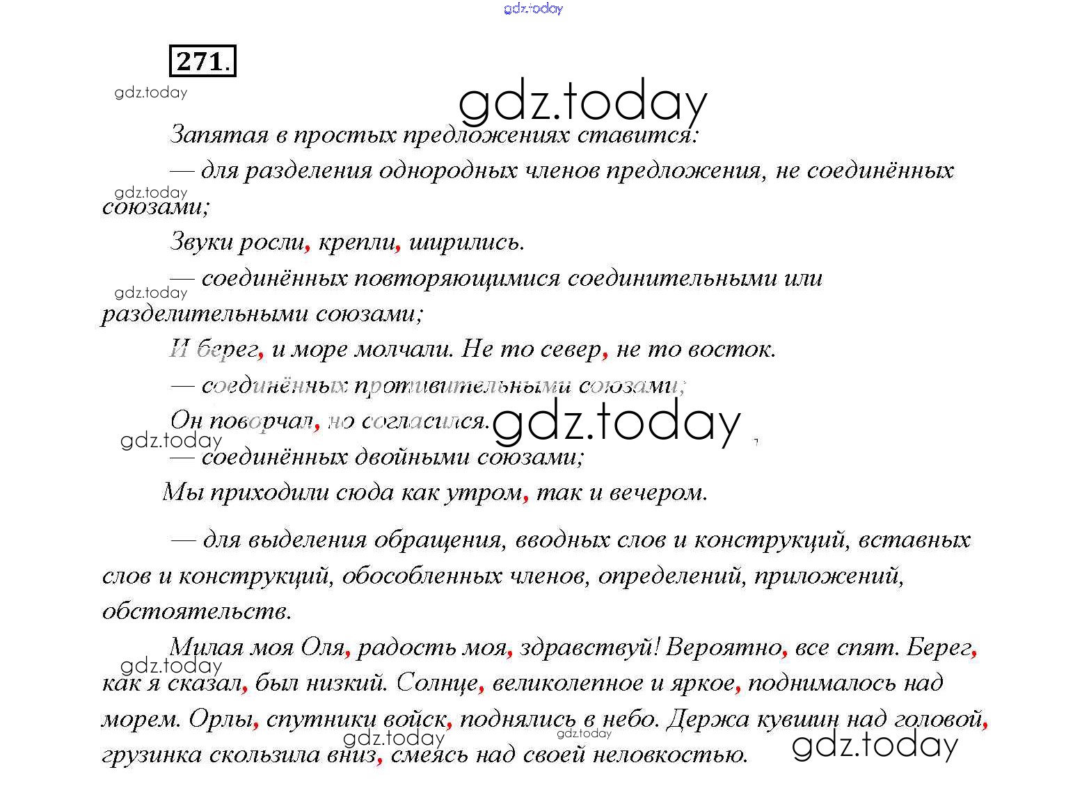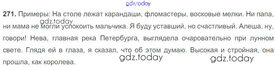 На страницах сайта gdz.today вы найдете учебный и вспомогательный материал, направленный на улучшения знаний школьной программы. ГДЗ - онлайн мир знаний Решение к упражнениям 271 Учебнику по Русскому языку для 9 класса Тростенцова, Ладыженская Просвещение 2014
