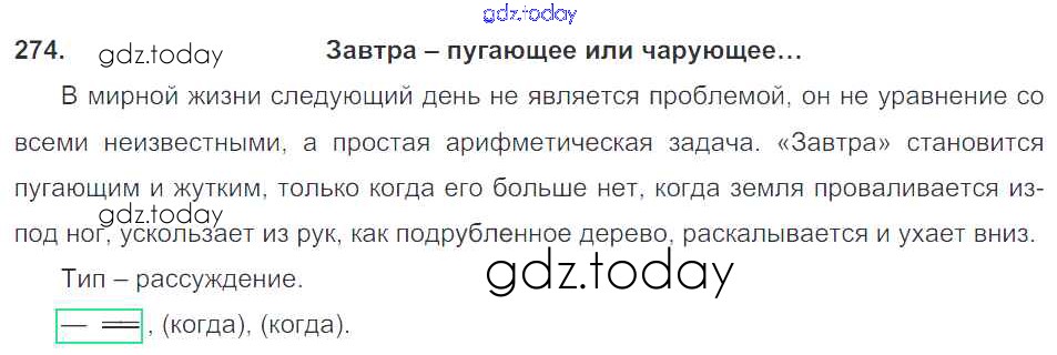 На страницах сайта gdz.today вы найдете учебный и вспомогательный материал, направленный на улучшения знаний школьной программы. ГДЗ - онлайн мир знаний Решение к упражнениям 274 Учебнику по Русскому языку для 9 класса Тростенцова, Ладыженская Просвещение 2014