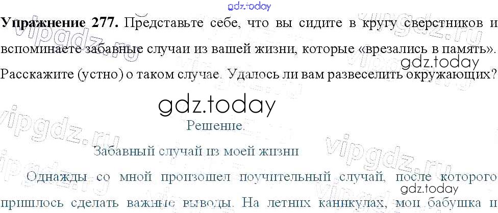 На страницах сайта gdz.today вы найдете учебный и вспомогательный материал, направленный на улучшения знаний школьной программы. ГДЗ - онлайн мир знаний Решение к упражнениям 277 Учебнику по Русскому языку для 9 класса Тростенцова, Ладыженская Просвещение 2014