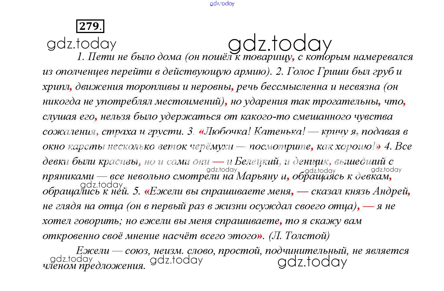 На страницах сайта gdz.today вы найдете учебный и вспомогательный материал, направленный на улучшения знаний школьной программы. ГДЗ - онлайн мир знаний Решение к упражнениям 279 Учебнику по Русскому языку для 9 класса Тростенцова, Ладыженская Просвещение 2014