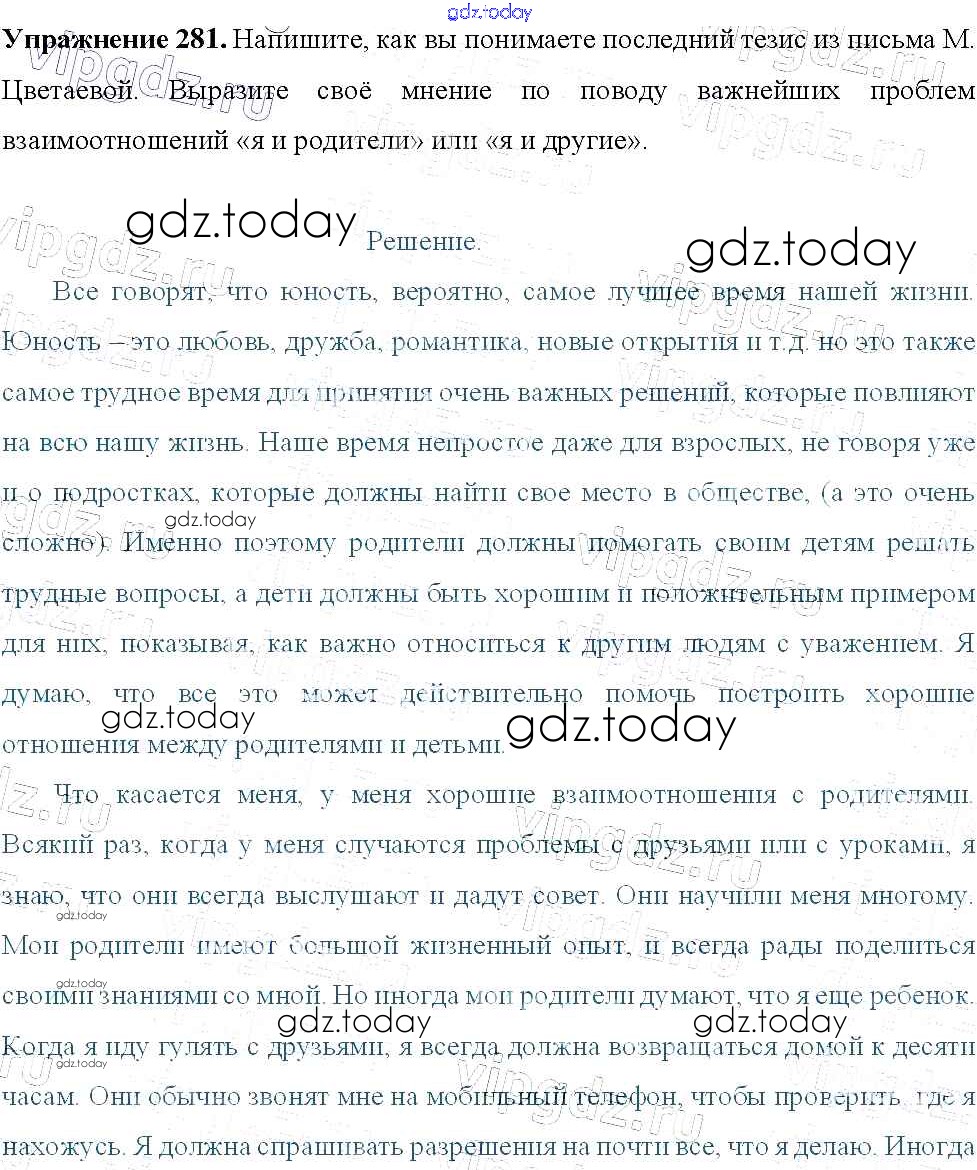 Ответы к Решение к упражнениям 281 Учебнику по Русскому языку для 9 класса Тростенцова, Ладыженская Просвещение 2014