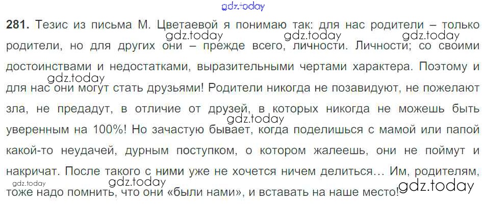 На страницах сайта gdz.today вы найдете учебный и вспомогательный материал, направленный на улучшения знаний школьной программы. ГДЗ - онлайн мир знаний Решение к упражнениям 281 Учебнику по Русскому языку для 9 класса Тростенцова, Ладыженская Просвещение 2014