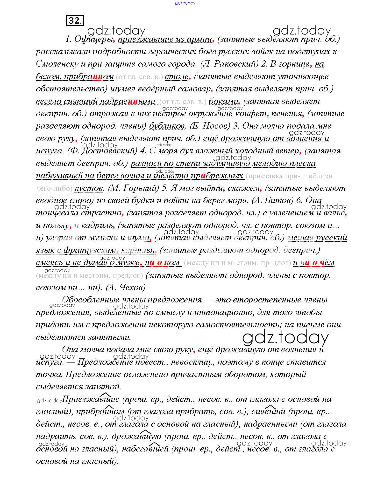На страницах сайта gdz.today вы найдете учебный и вспомогательный материал, направленный на улучшения знаний школьной программы. ГДЗ - онлайн мир знаний Решение к упражнениям 32 Учебнику по Русскому языку для 9 класса Тростенцова, Ладыженская Просвещение 2014