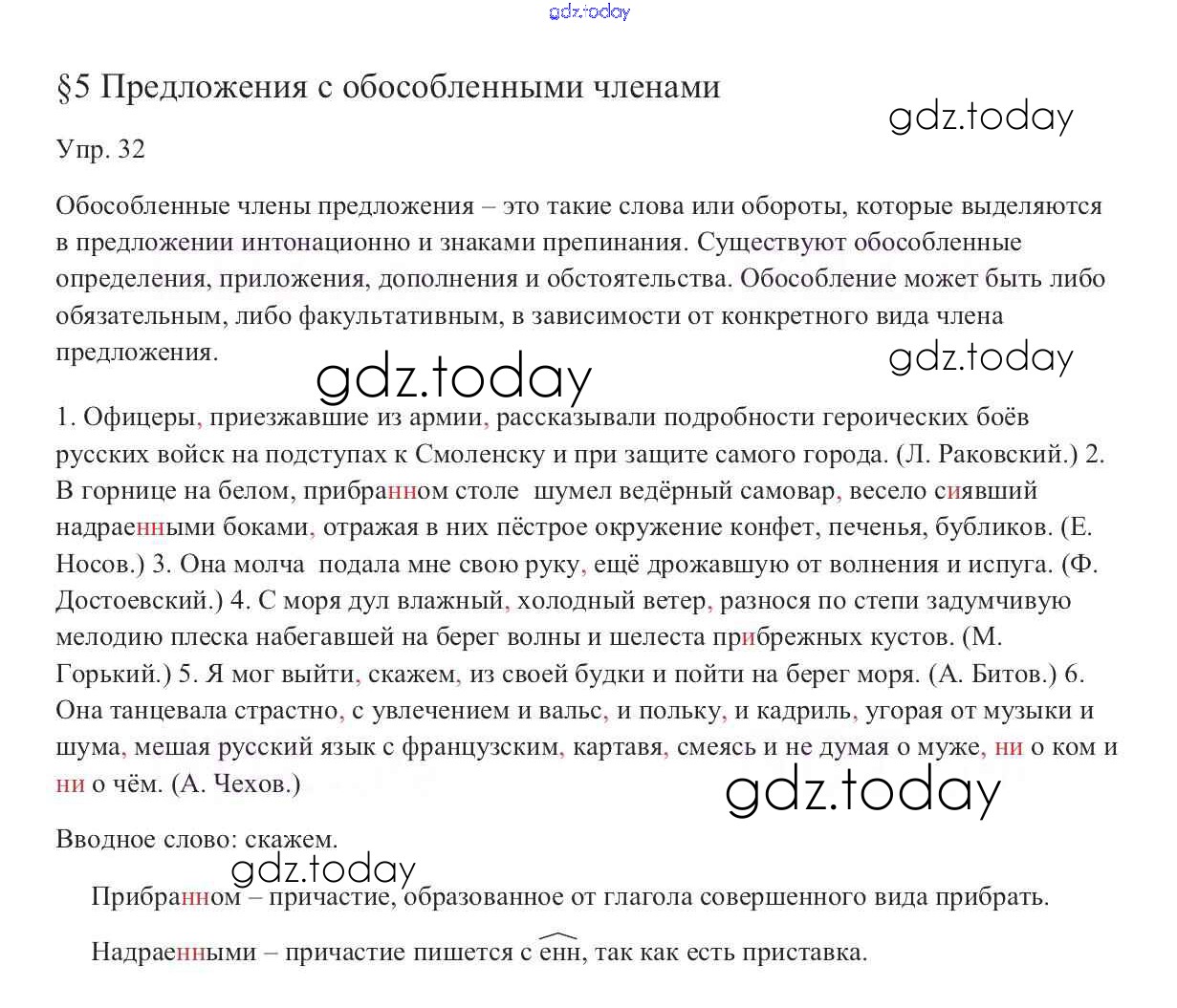 Ответы к Решение к упражнениям 32 Учебнику по Русскому языку для 9 класса Тростенцова, Ладыженская Просвещение 2014
