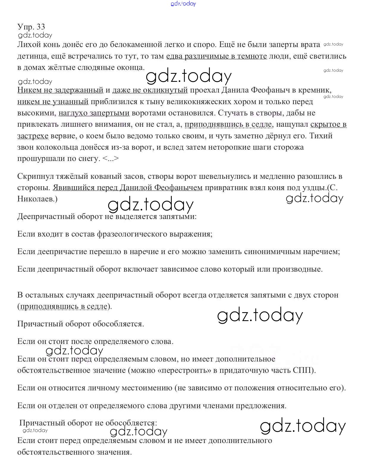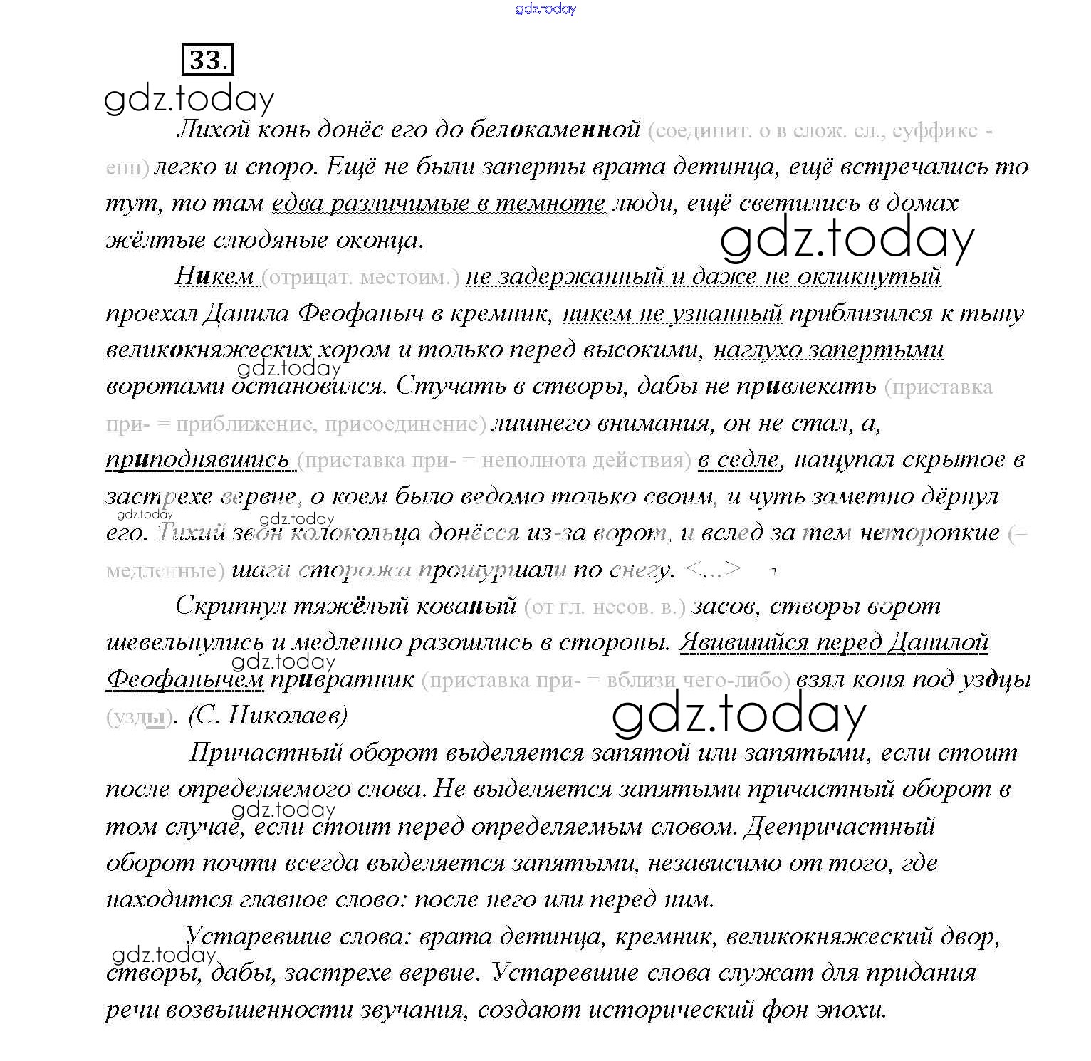 На страницах сайта gdz.today вы найдете учебный и вспомогательный материал, направленный на улучшения знаний школьной программы. ГДЗ - онлайн мир знаний Решение к упражнениям  33 Учебнику по Русскому языку для 9 класса Тростенцова, Ладыженская  Просвещение  2014