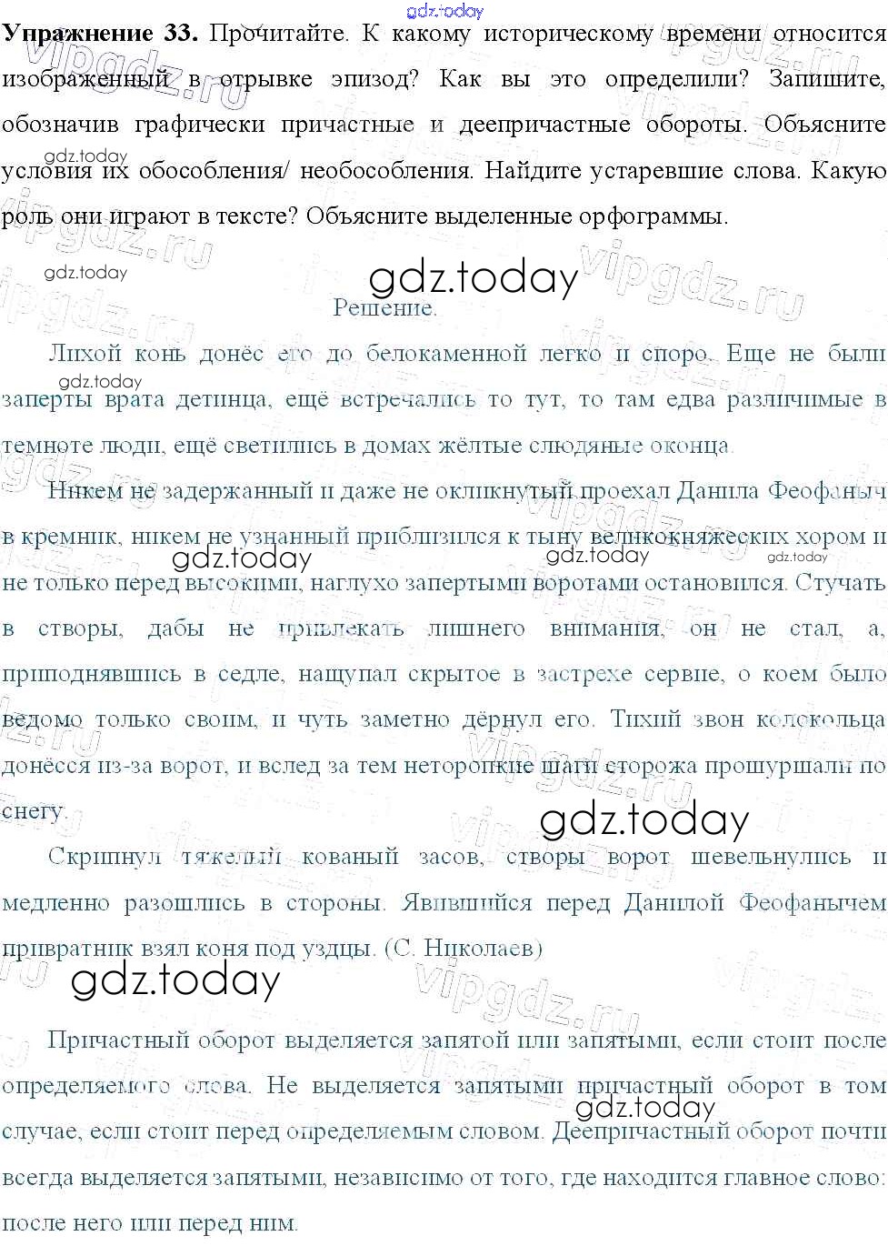 Ответы к Решение к упражнениям  33 Учебнику по Русскому языку для 9 класса Тростенцова, Ладыженская  Просвещение  2014