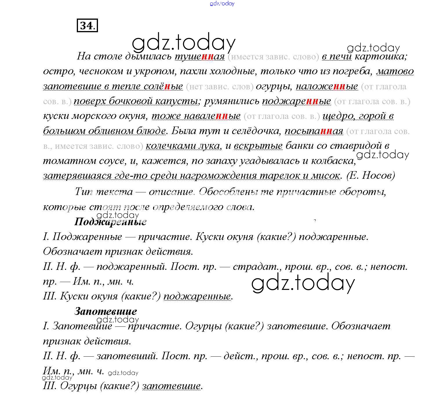 На страницах сайта gdz.today вы найдете учебный и вспомогательный материал, направленный на улучшения знаний школьной программы. ГДЗ - онлайн мир знаний Решение к упражнениям 34 Учебнику по Русскому языку для 9 класса Тростенцова, Ладыженская Просвещение 2014