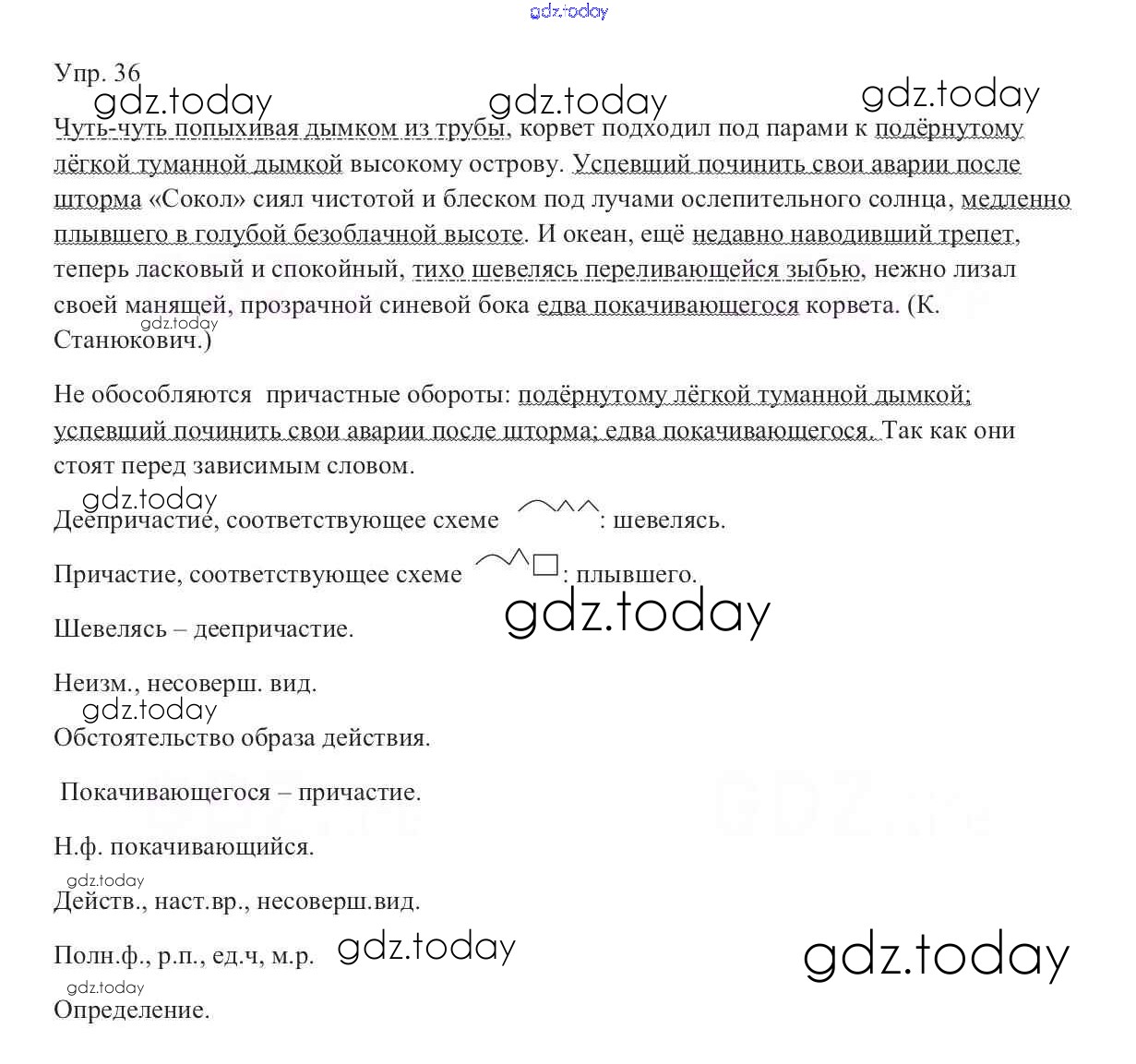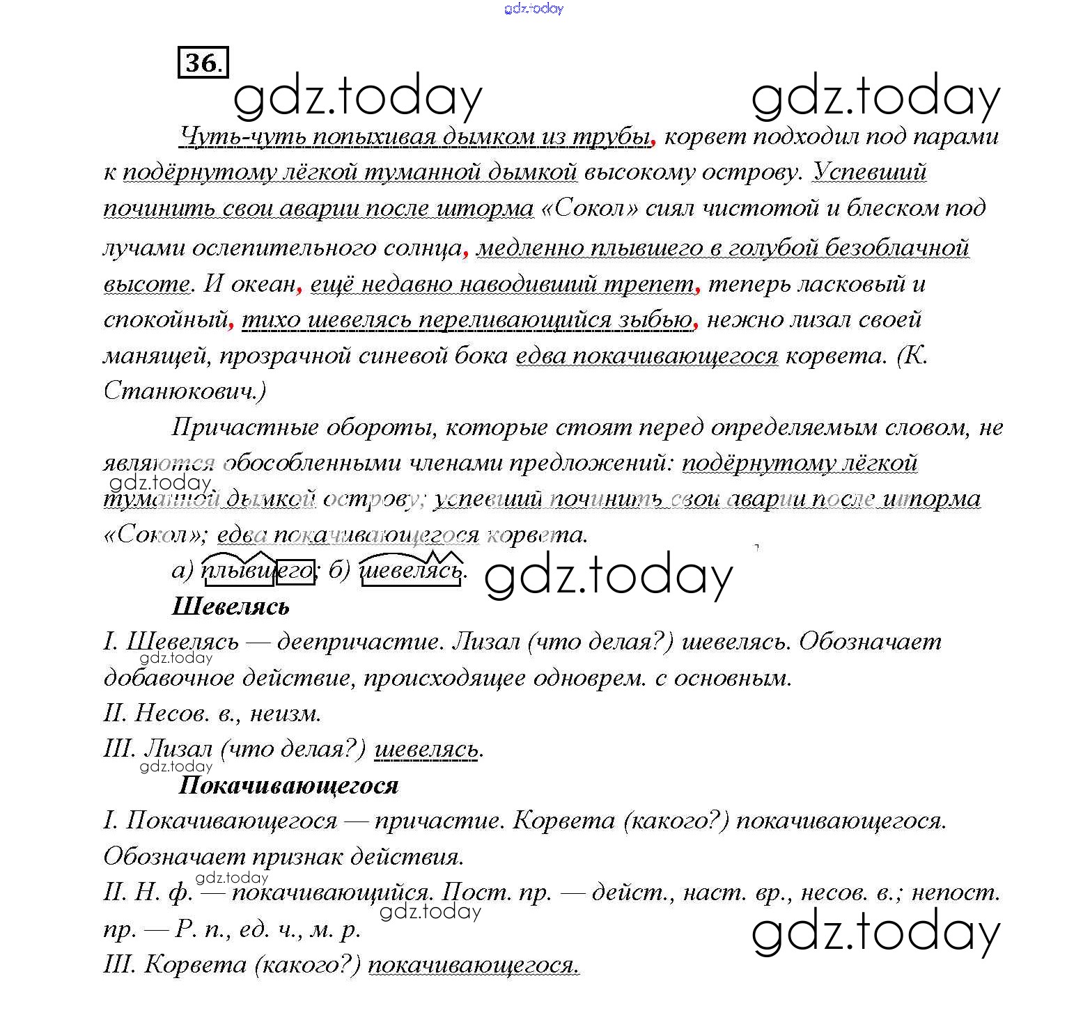 На страницах сайта gdz.today вы найдете учебный и вспомогательный материал, направленный на улучшения знаний школьной программы. ГДЗ - онлайн мир знаний Решение к упражнениям 36 Учебнику по Русскому языку для 9 класса Тростенцова, Ладыженская Просвещение 2014