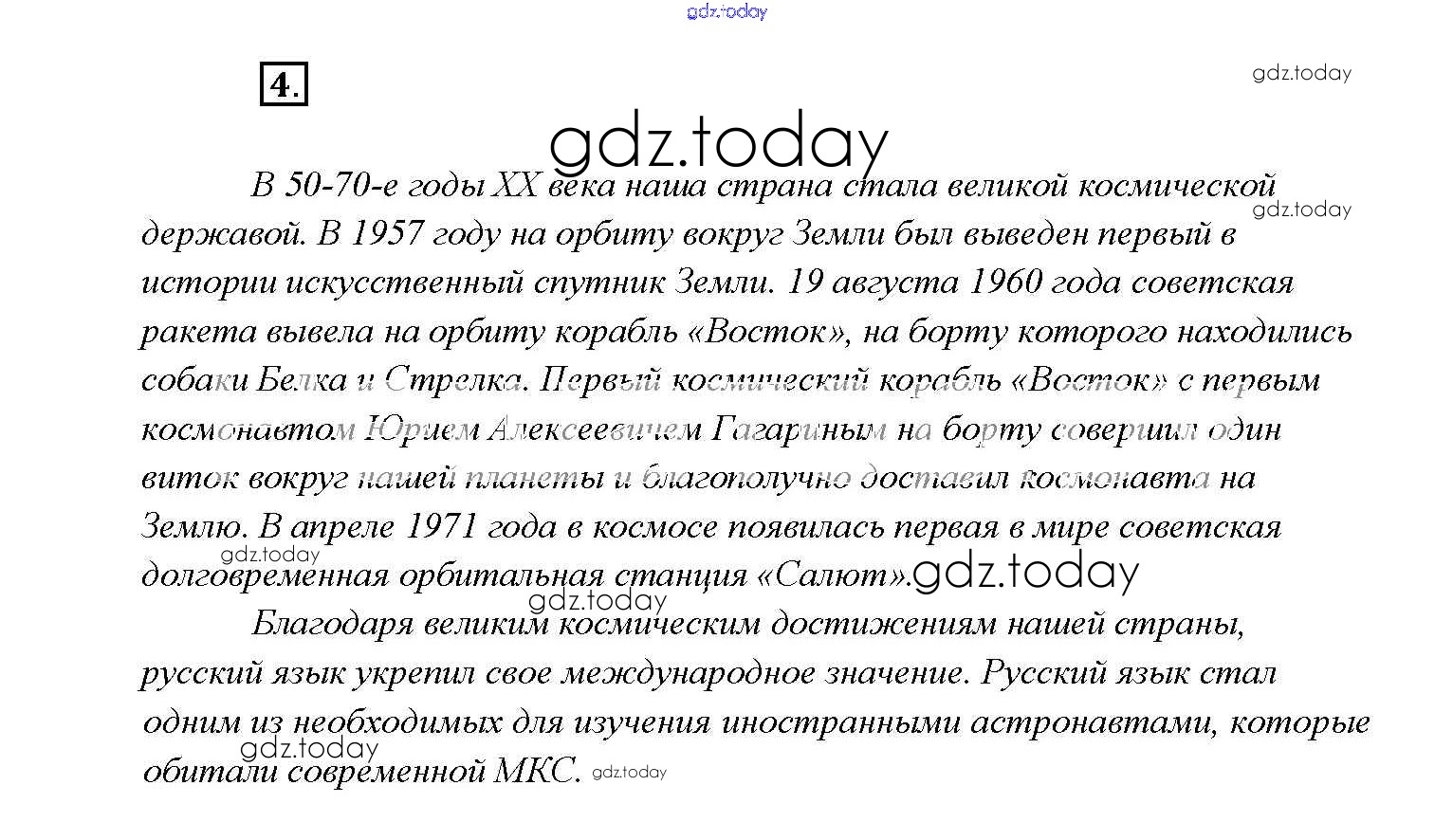 На страницах сайта gdz.today вы найдете учебный и вспомогательный материал, направленный на улучшения знаний школьной программы. ГДЗ - онлайн мир знаний Решение к упражнениям 4 Учебнику по Русскому языку для 9 класса Тростенцова, Ладыженская Просвещение 2014