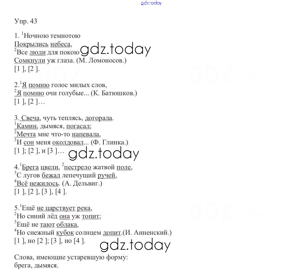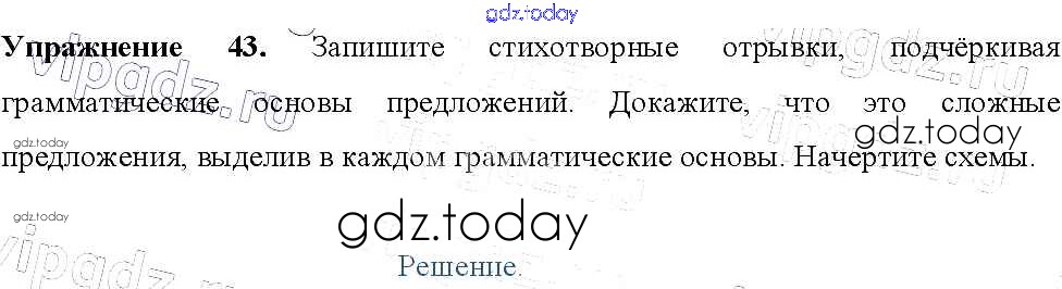 Ответы к Решение к упражнениям 43 Учебнику по Русскому языку для 9 класса Тростенцова, Ладыженская Просвещение 2014