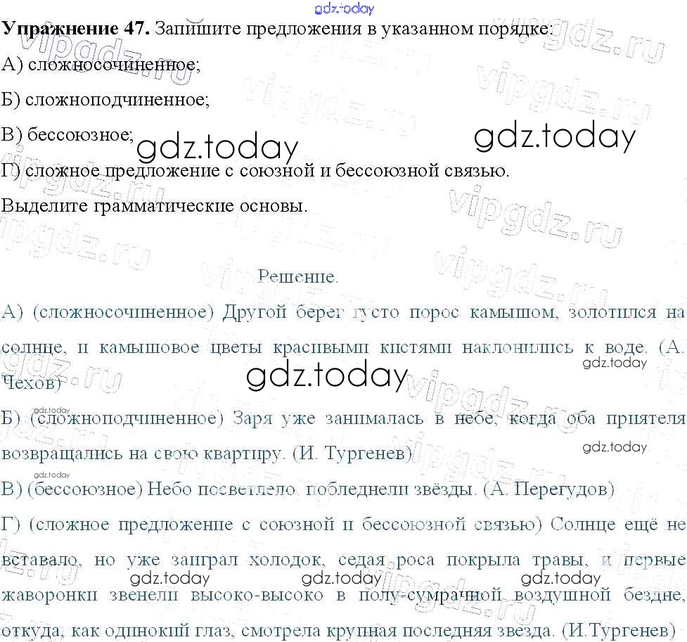Ответы к Решение к упражнениям 47 Учебнику по Русскому языку для 9 класса Тростенцова, Ладыженская Просвещение 2014