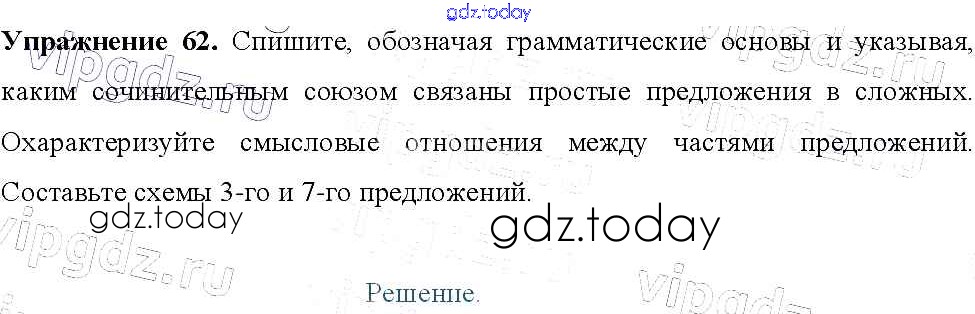 Ответы к Решение к упражнениям 62 Учебнику по Русскому языку для 9 класса Тростенцова, Ладыженская Просвещение 2014