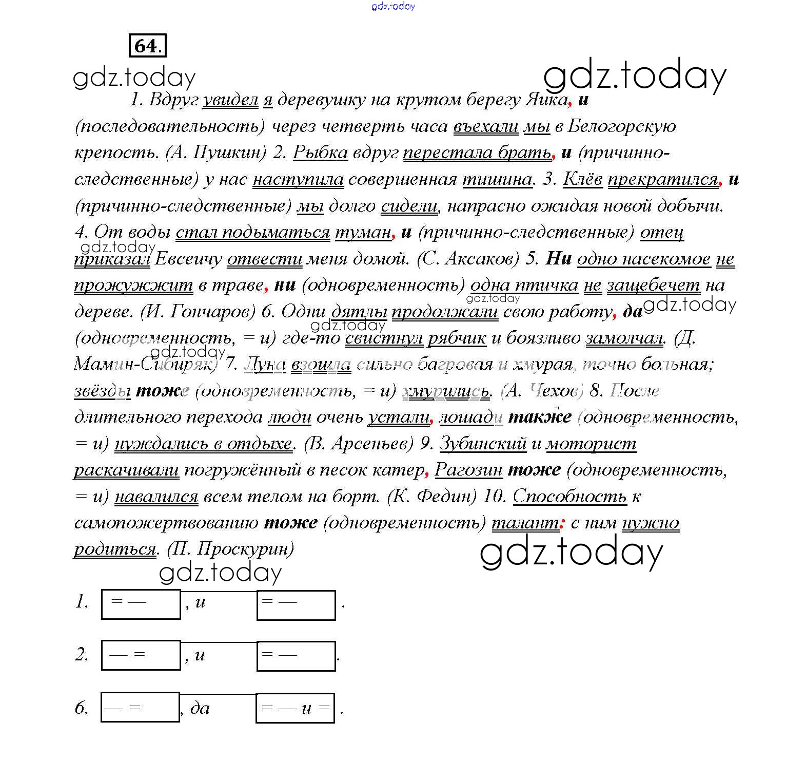 На страницах сайта gdz.today вы найдете учебный и вспомогательный материал, направленный на улучшения знаний школьной программы. ГДЗ - онлайн мир знаний Решение к упражнениям 64 Учебнику по Русскому языку для 9 класса Тростенцова, Ладыженская Просвещение 2014
