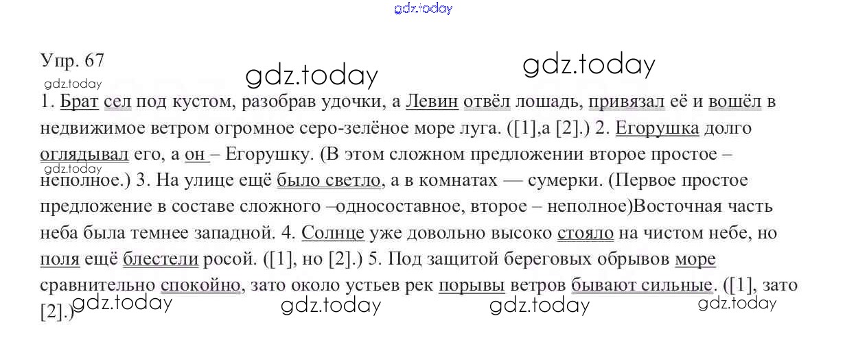 На страницах сайта gdz.today вы найдете учебный и вспомогательный материал, направленный на улучшения знаний школьной программы. ГДЗ - онлайн мир знаний Решение к упражнениям 67 Учебнику по Русскому языку для 9 класса Тростенцова, Ладыженская Просвещение 2014