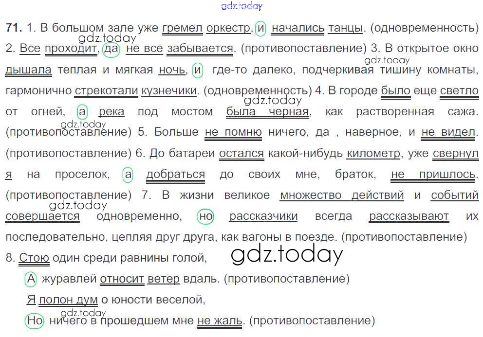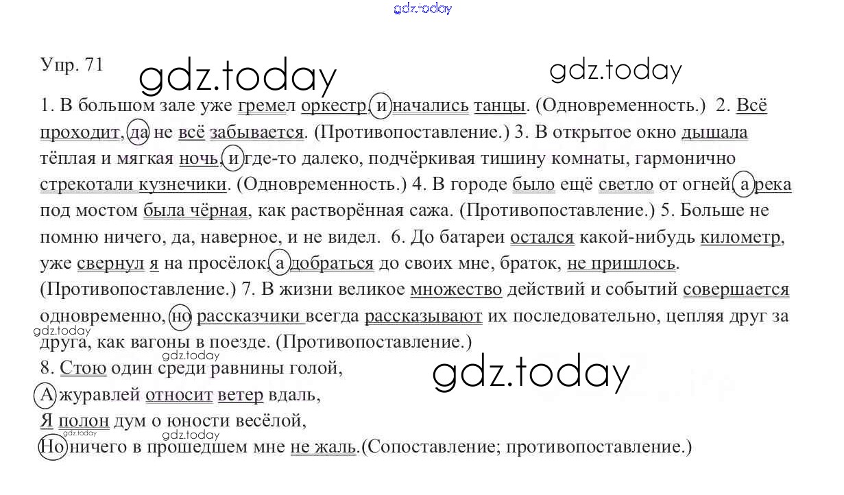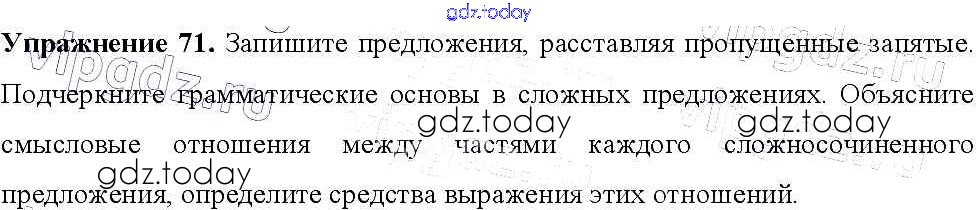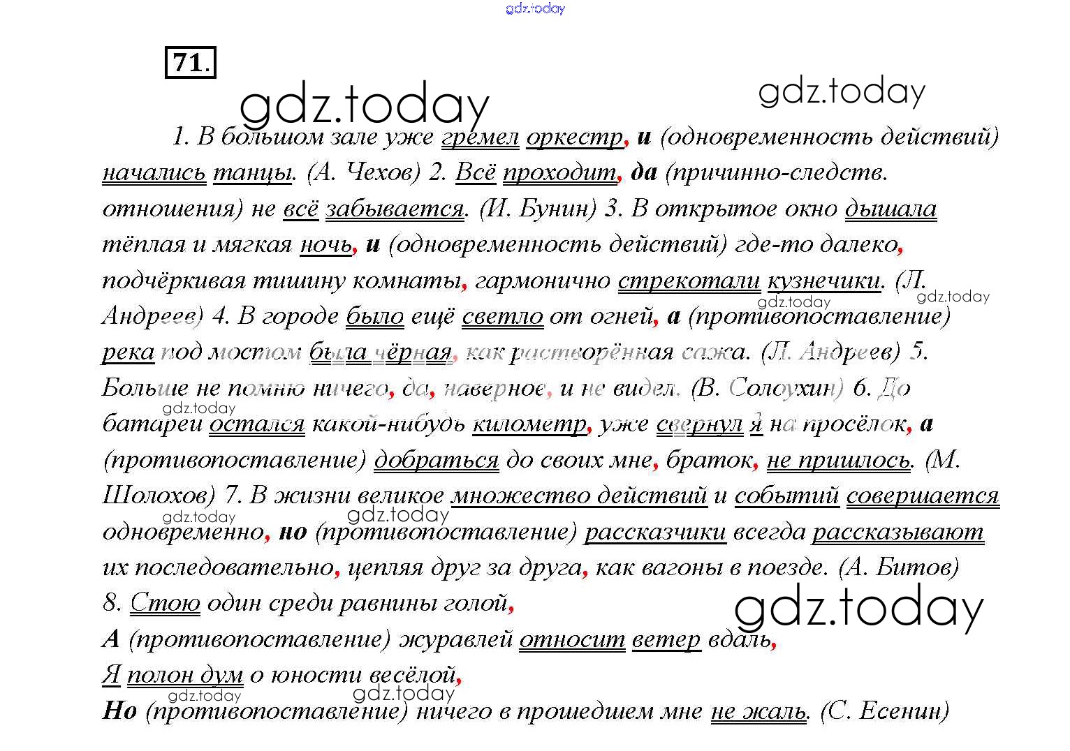 На страницах сайта gdz.today вы найдете учебный и вспомогательный материал, направленный на улучшения знаний школьной программы. ГДЗ - онлайн мир знаний Решение к упражнениям 71 Учебнику по Русскому языку для 9 класса Тростенцова, Ладыженская Просвещение 2014