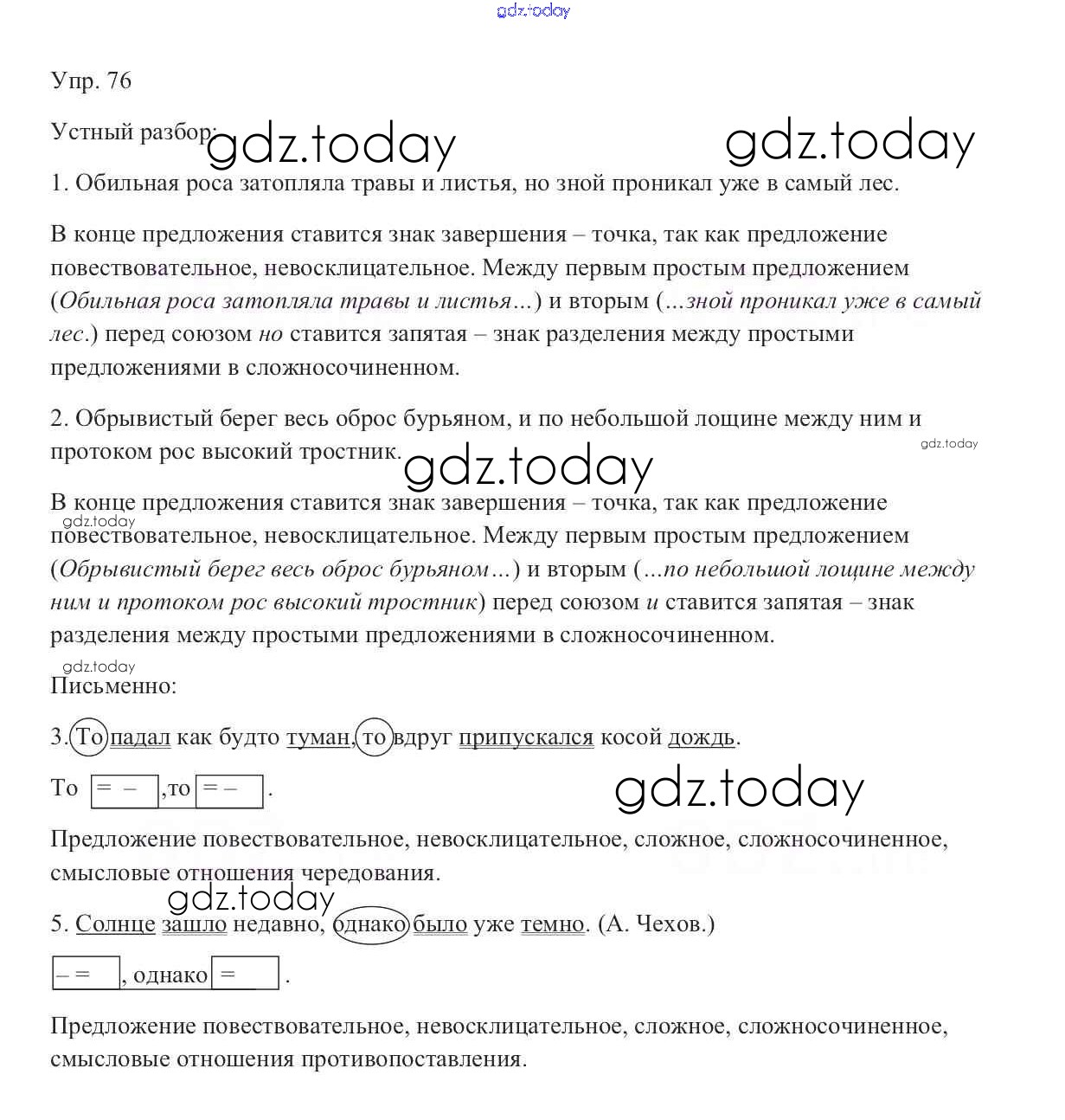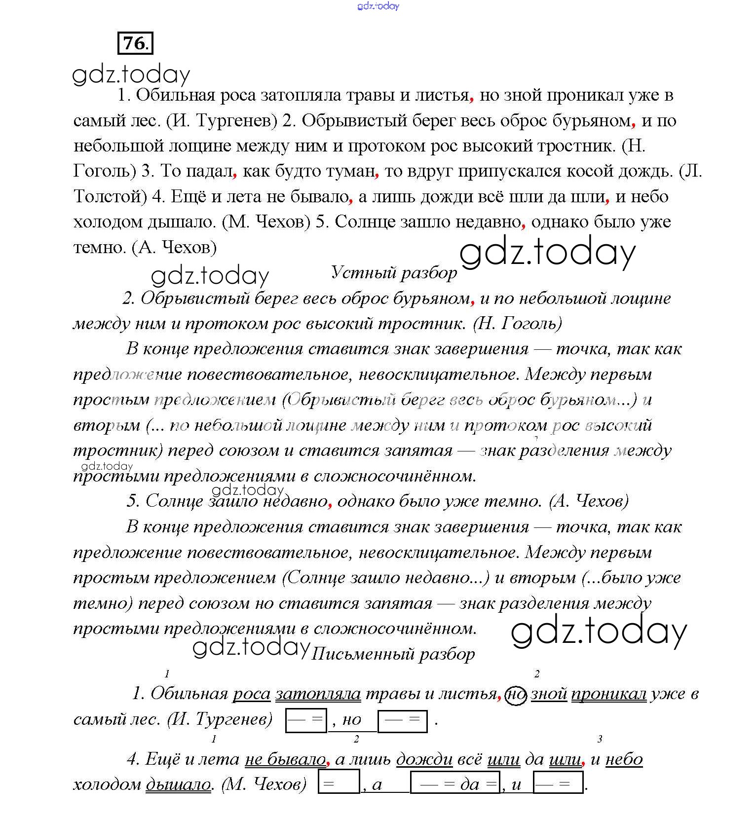 На страницах сайта gdz.today вы найдете учебный и вспомогательный материал, направленный на улучшения знаний школьной программы. ГДЗ - онлайн мир знаний Решение к упражнениям 76 Учебнику по Русскому языку для 9 класса Тростенцова, Ладыженская Просвещение 2014