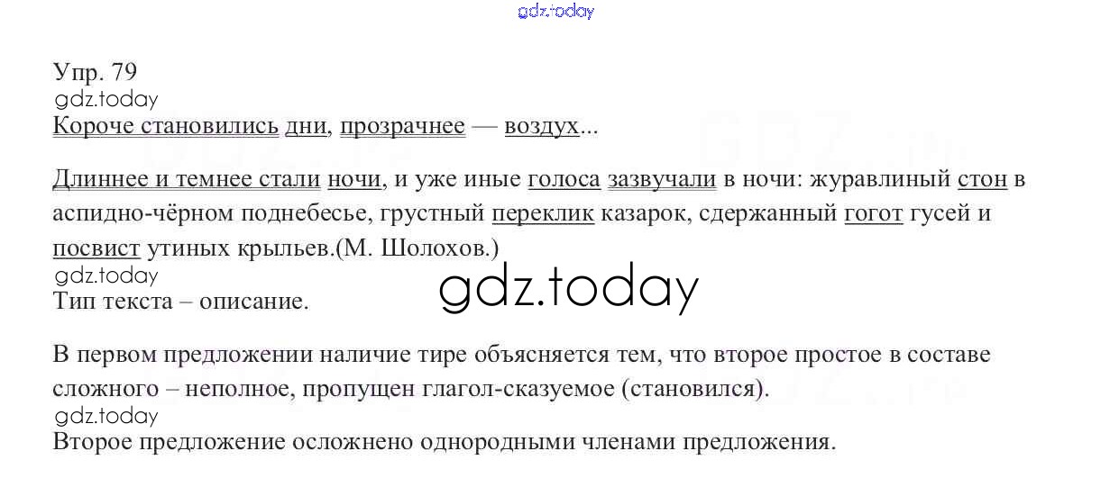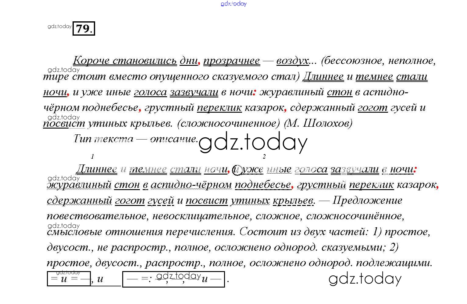 На страницах сайта gdz.today вы найдете учебный и вспомогательный материал, направленный на улучшения знаний школьной программы. ГДЗ - онлайн мир знаний Решение к упражнениям 79 Учебнику по Русскому языку для 9 класса Тростенцова, Ладыженская Просвещение 2014