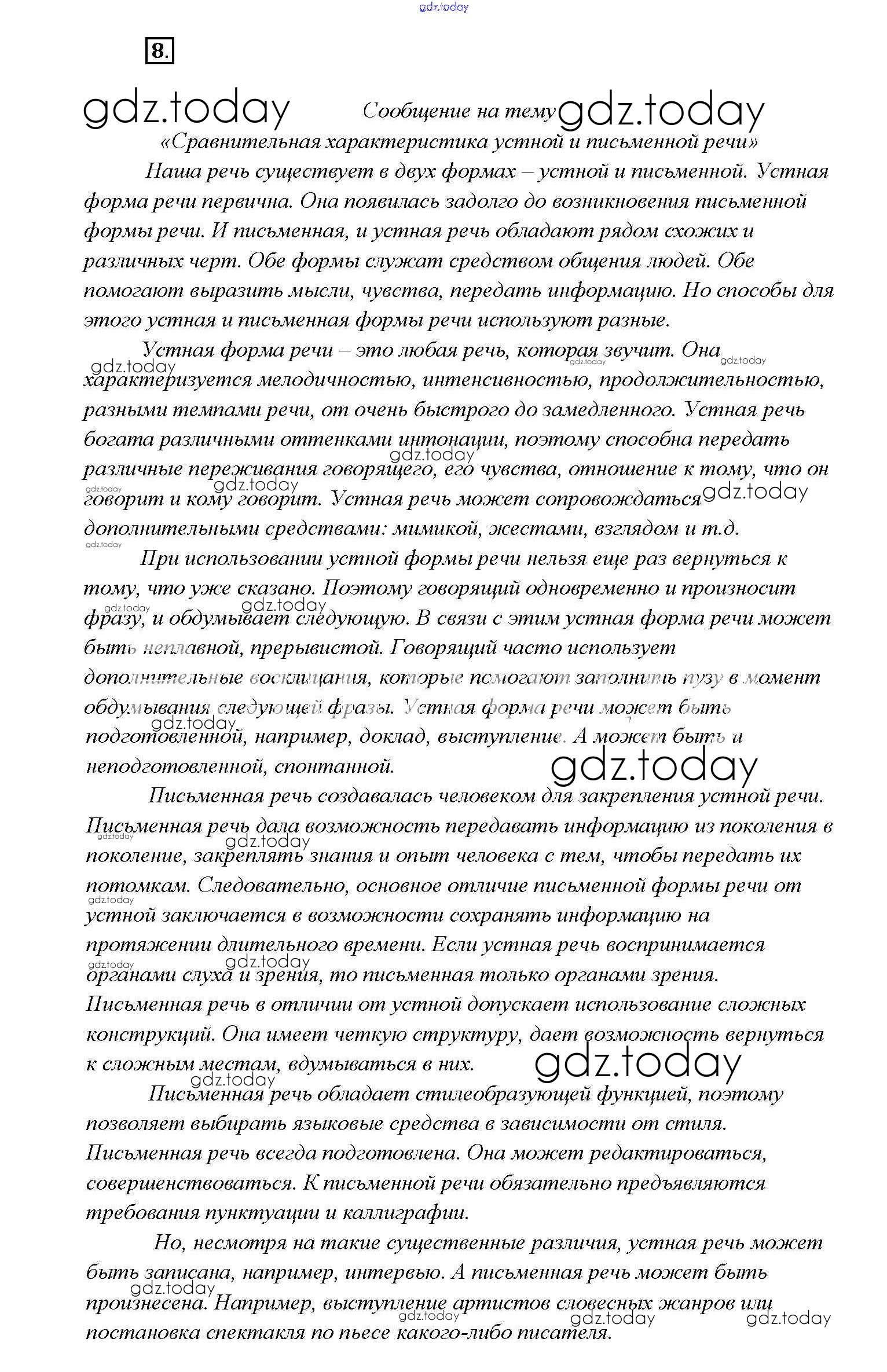 На страницах сайта gdz.today вы найдете учебный и вспомогательный материал, направленный на улучшения знаний школьной программы. ГДЗ - онлайн мир знаний Решение к упражнениям 8 Учебнику по Русскому языку для 9 класса Тростенцова, Ладыженская Просвещение 2014