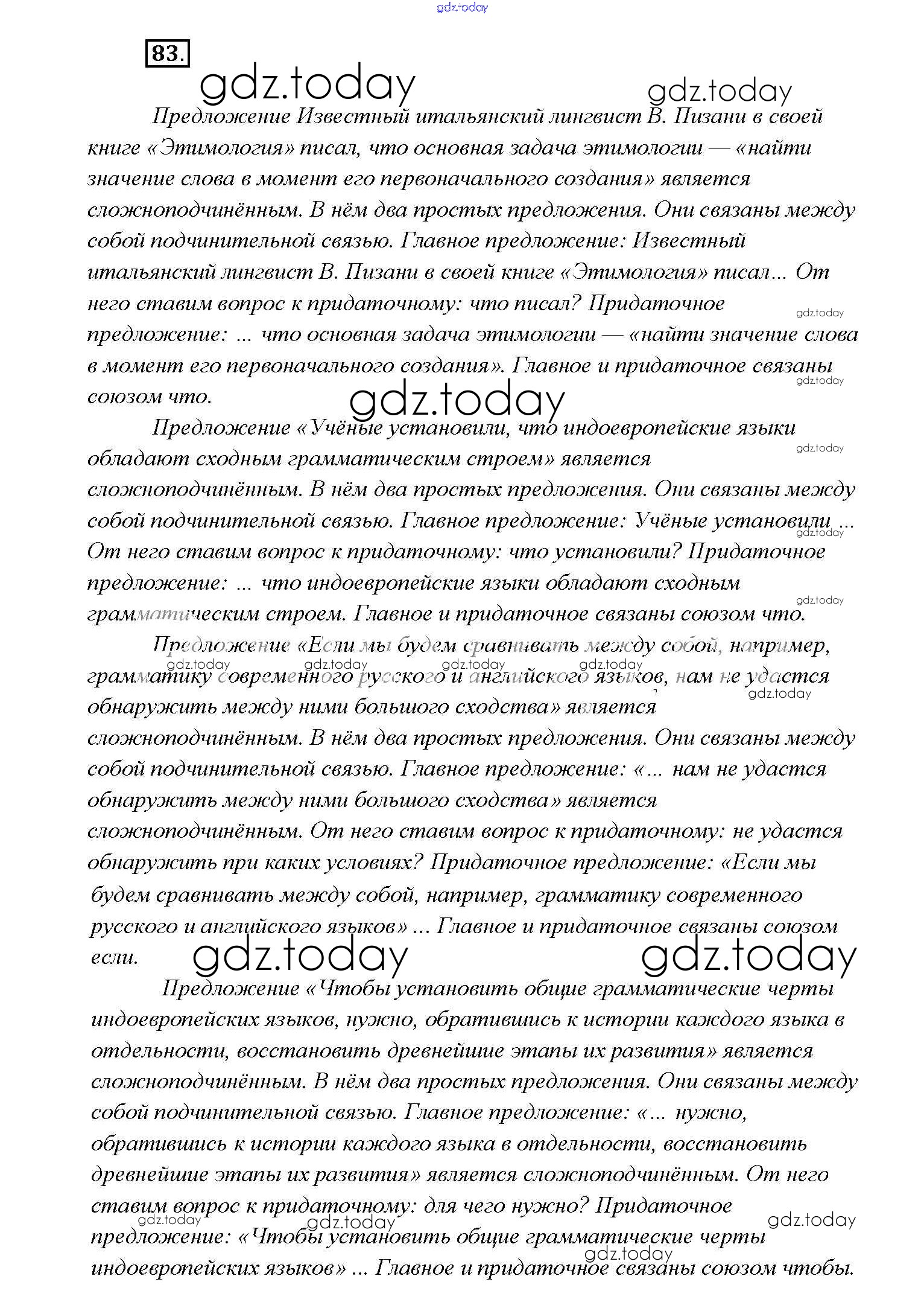 На страницах сайта gdz.today вы найдете учебный и вспомогательный материал, направленный на улучшения знаний школьной программы. ГДЗ - онлайн мир знаний Решение к упражнениям 83 Учебнику по Русскому языку для 9 класса Тростенцова, Ладыженская Просвещение 2014
