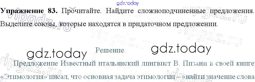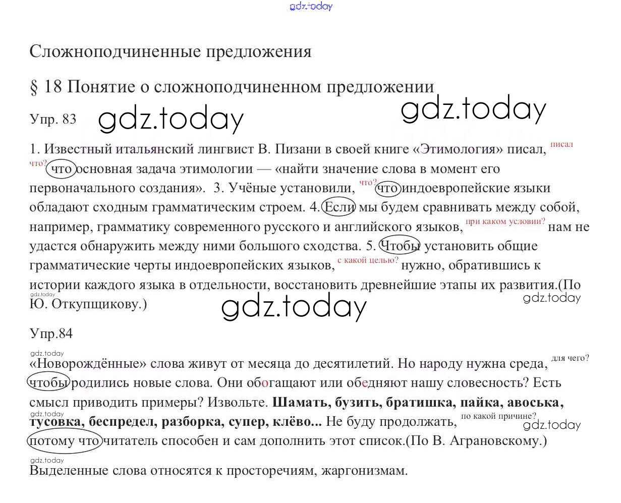 Ответы к Решение к упражнениям 83 Учебнику по Русскому языку для 9 класса Тростенцова, Ладыженская Просвещение 2014