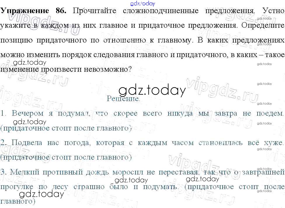 На страницах сайта gdz.today вы найдете учебный и вспомогательный материал, направленный на улучшения знаний школьной программы. ГДЗ - онлайн мир знаний Решение к упражнениям 86 Учебнику по Русскому языку для 9 класса Тростенцова, Ладыженская Просвещение 2014