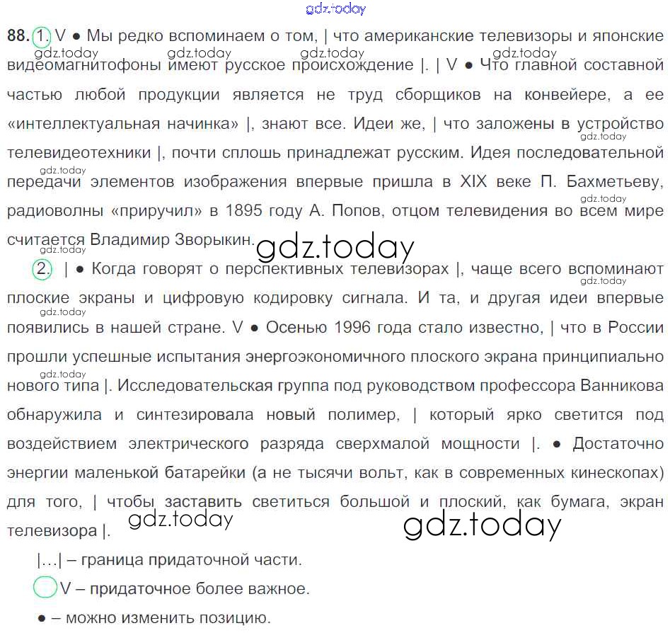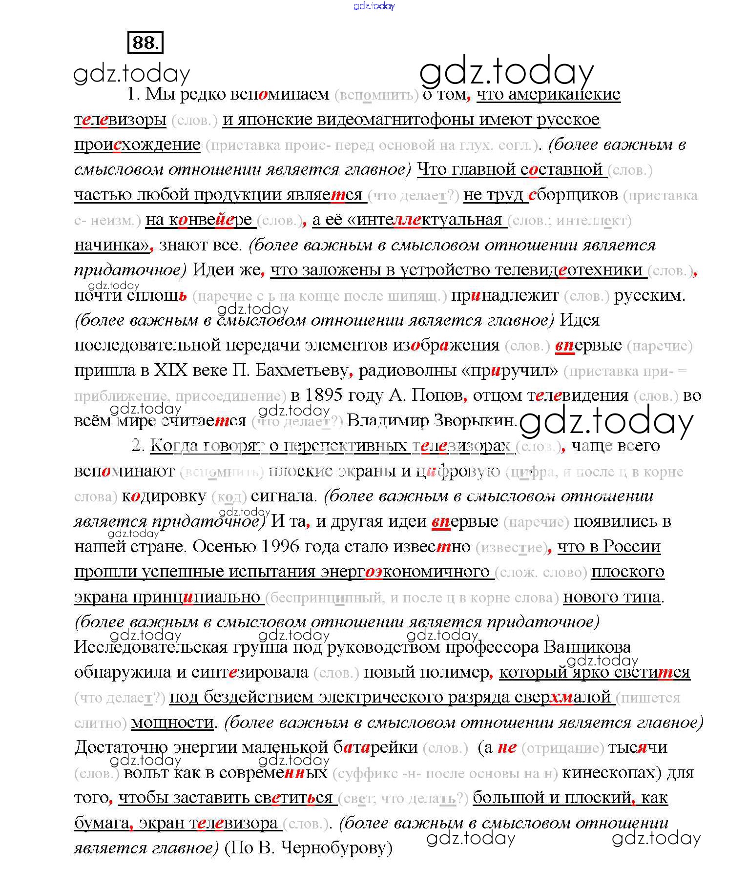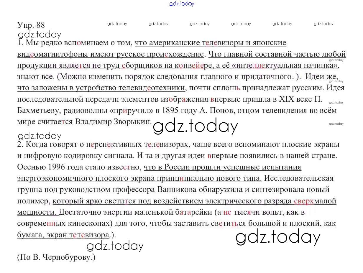 На страницах сайта gdz.today вы найдете учебный и вспомогательный материал, направленный на улучшения знаний школьной программы. ГДЗ - онлайн мир знаний Решение к упражнениям 88 Учебнику по Русскому языку для 9 класса Тростенцова, Ладыженская Просвещение 2014
