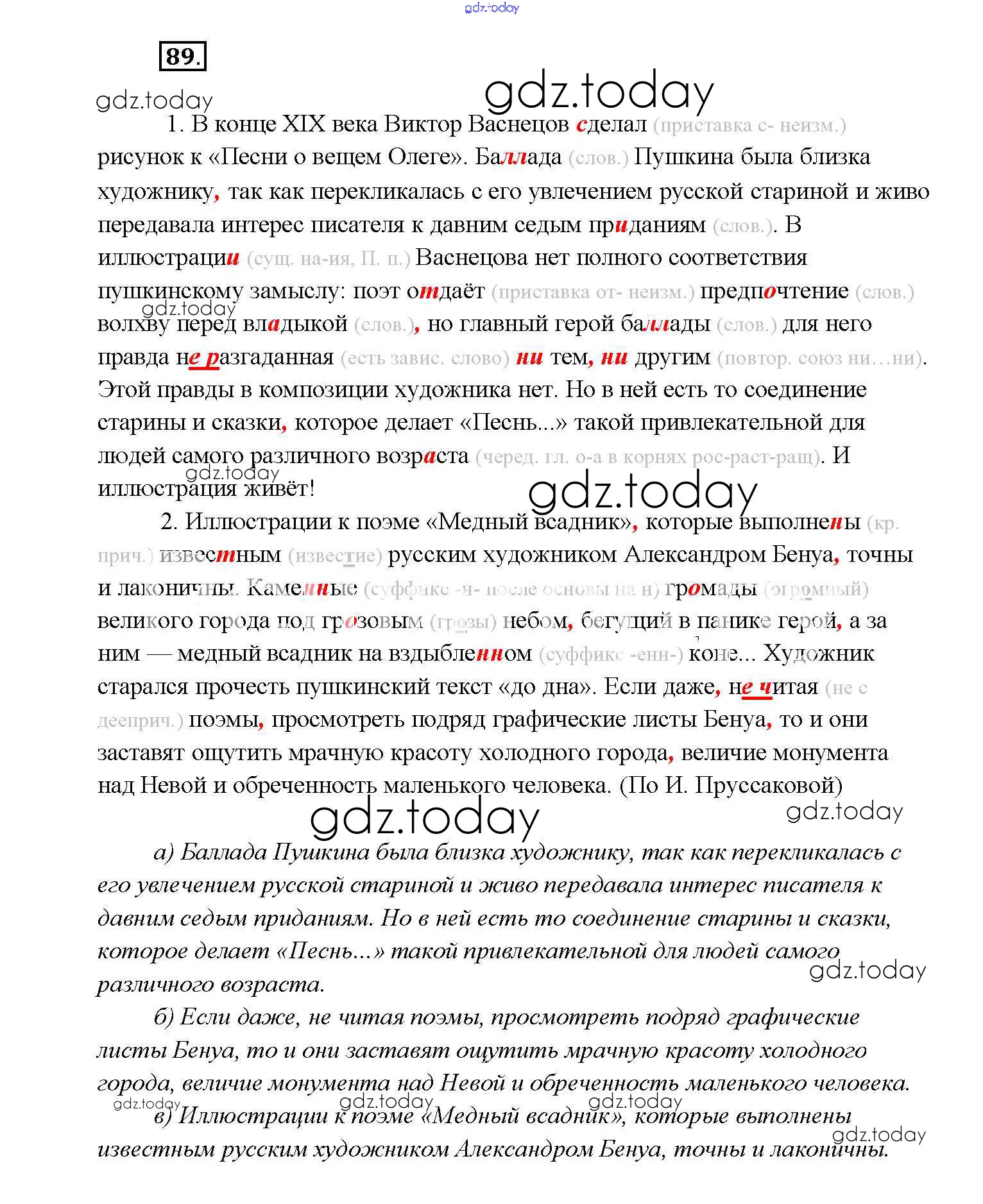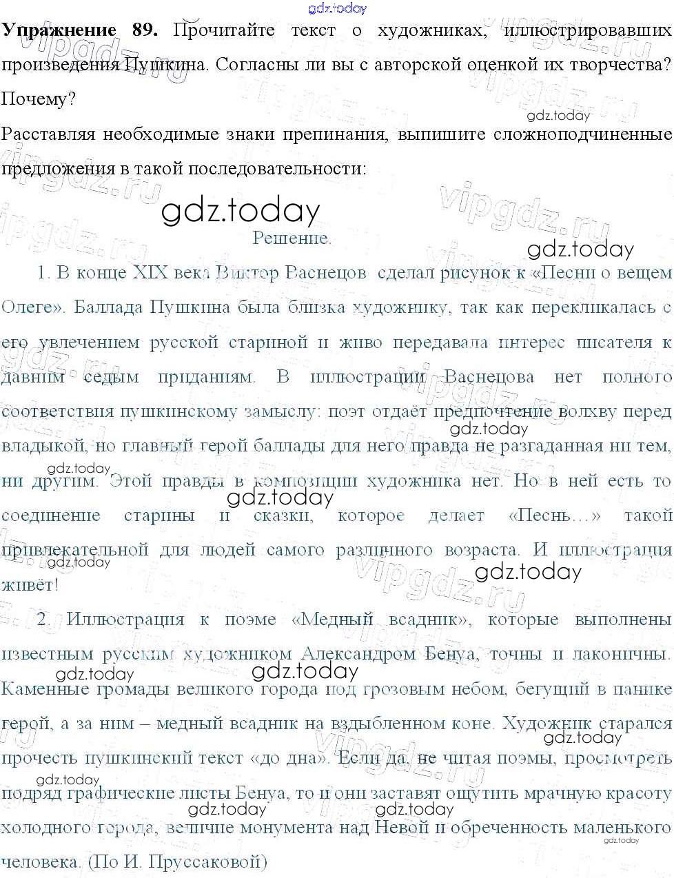 Ответы к Решение к упражнениям 89 Учебнику по Русскому языку для 9 класса Тростенцова, Ладыженская Просвещение 2014