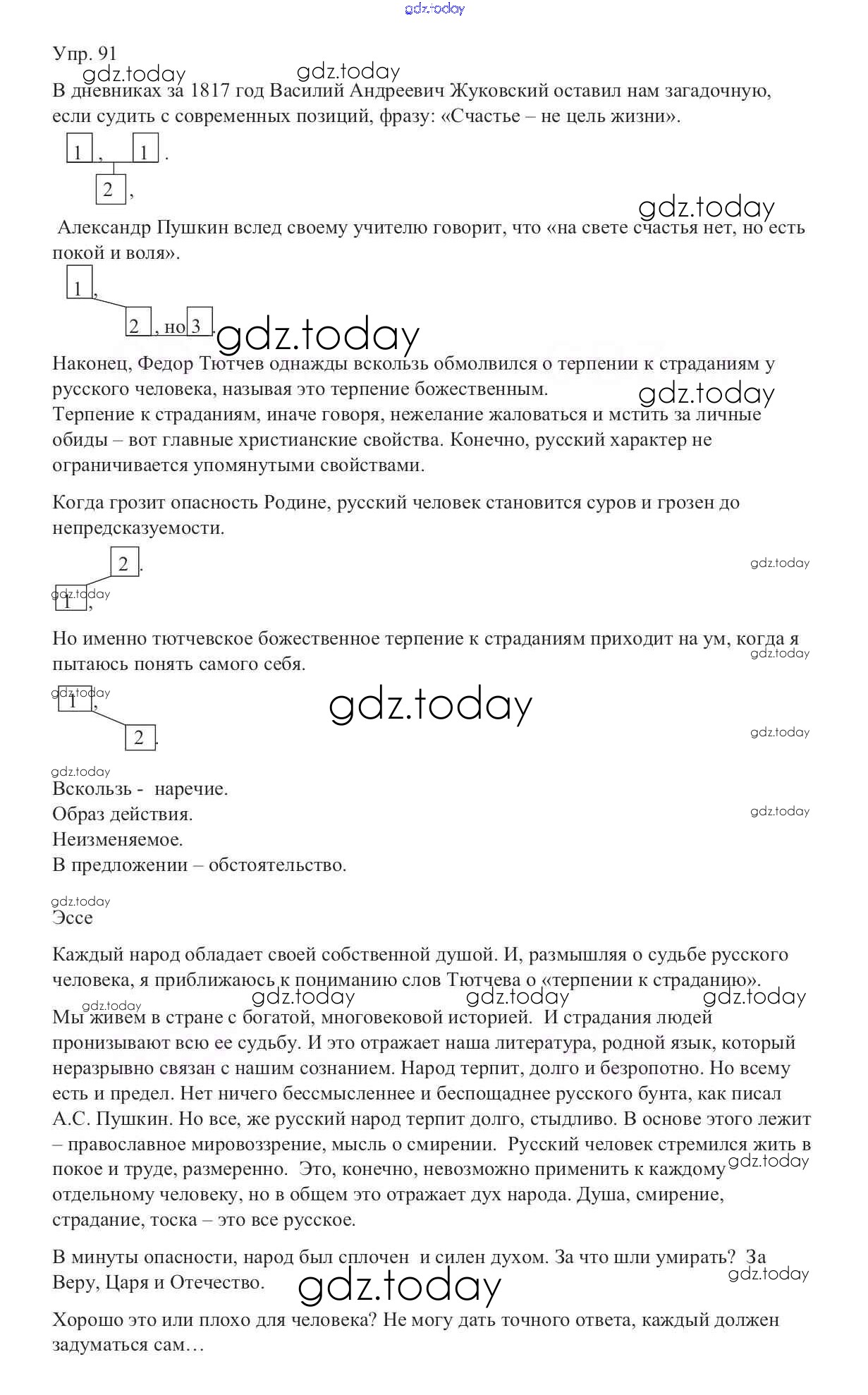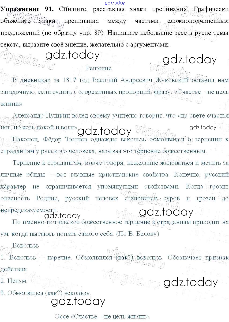 Ответы к Решение к упражнениям 91 Учебнику по Русскому языку для 9 класса Тростенцова, Ладыженская Просвещение 2014