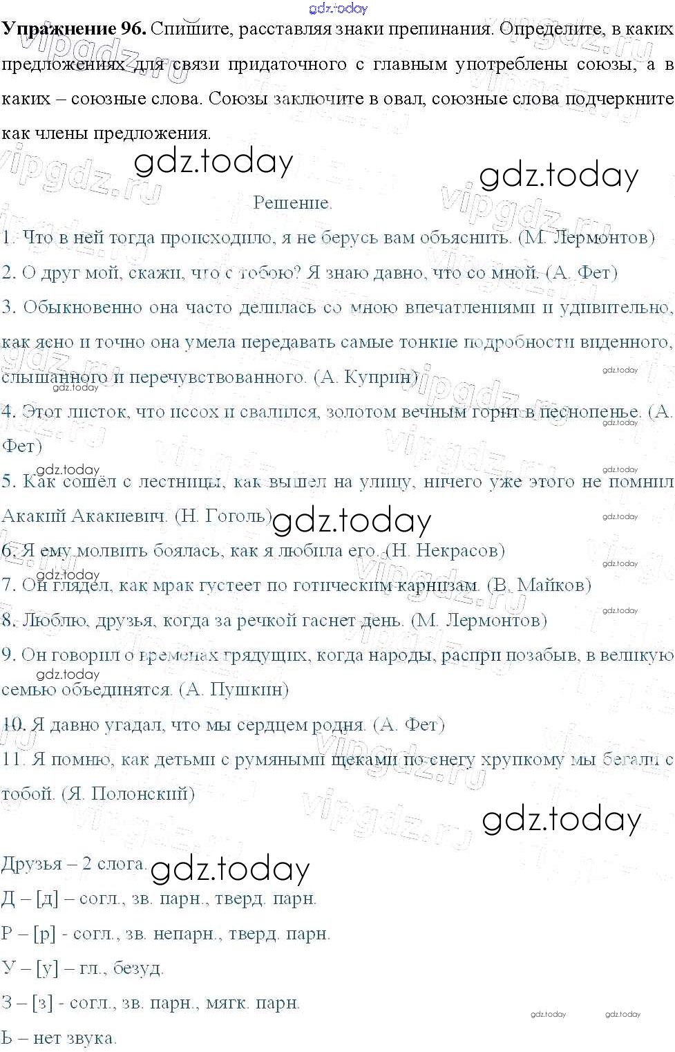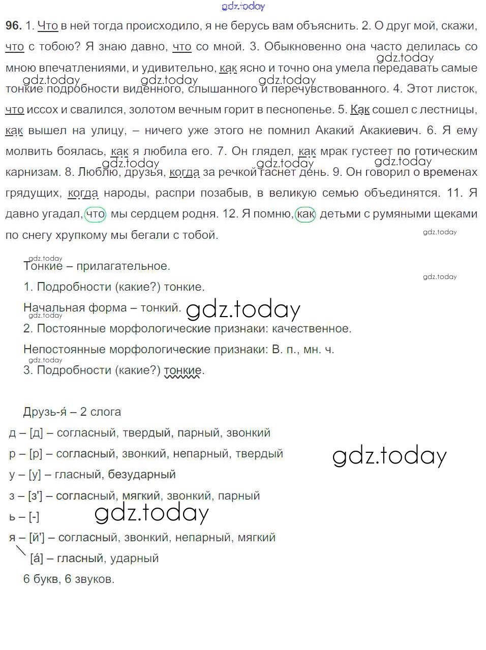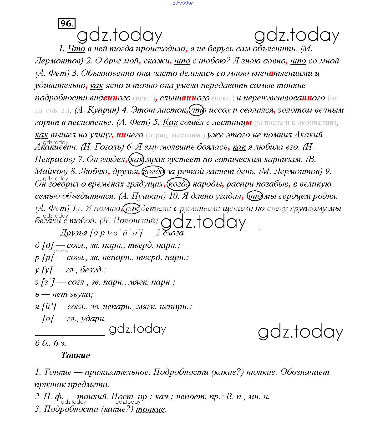 На страницах сайта gdz.today вы найдете учебный и вспомогательный материал, направленный на улучшения знаний школьной программы. ГДЗ - онлайн мир знаний Решение к упражнениям 96 Учебнику по Русскому языку для 9 класса Тростенцова, Ладыженская Просвещение 2014