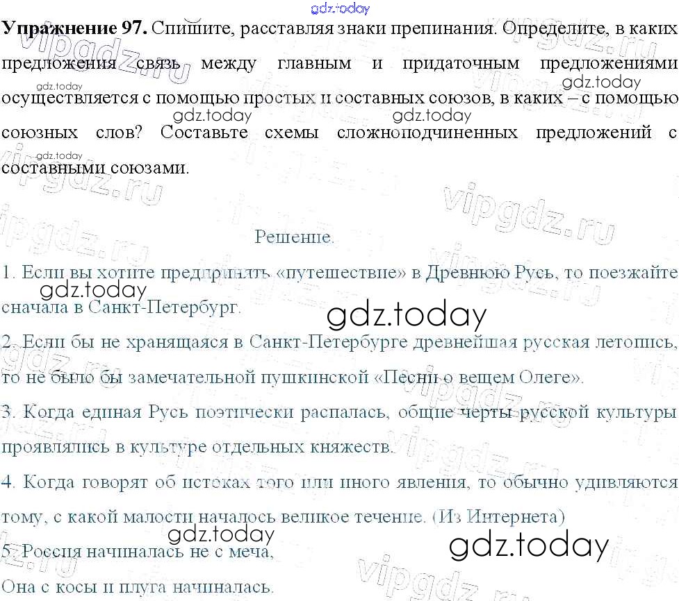 Ответы к Решение к упражнениям 97 Учебнику по Русскому языку для 9 класса Тростенцова, Ладыженская Просвещение 2014