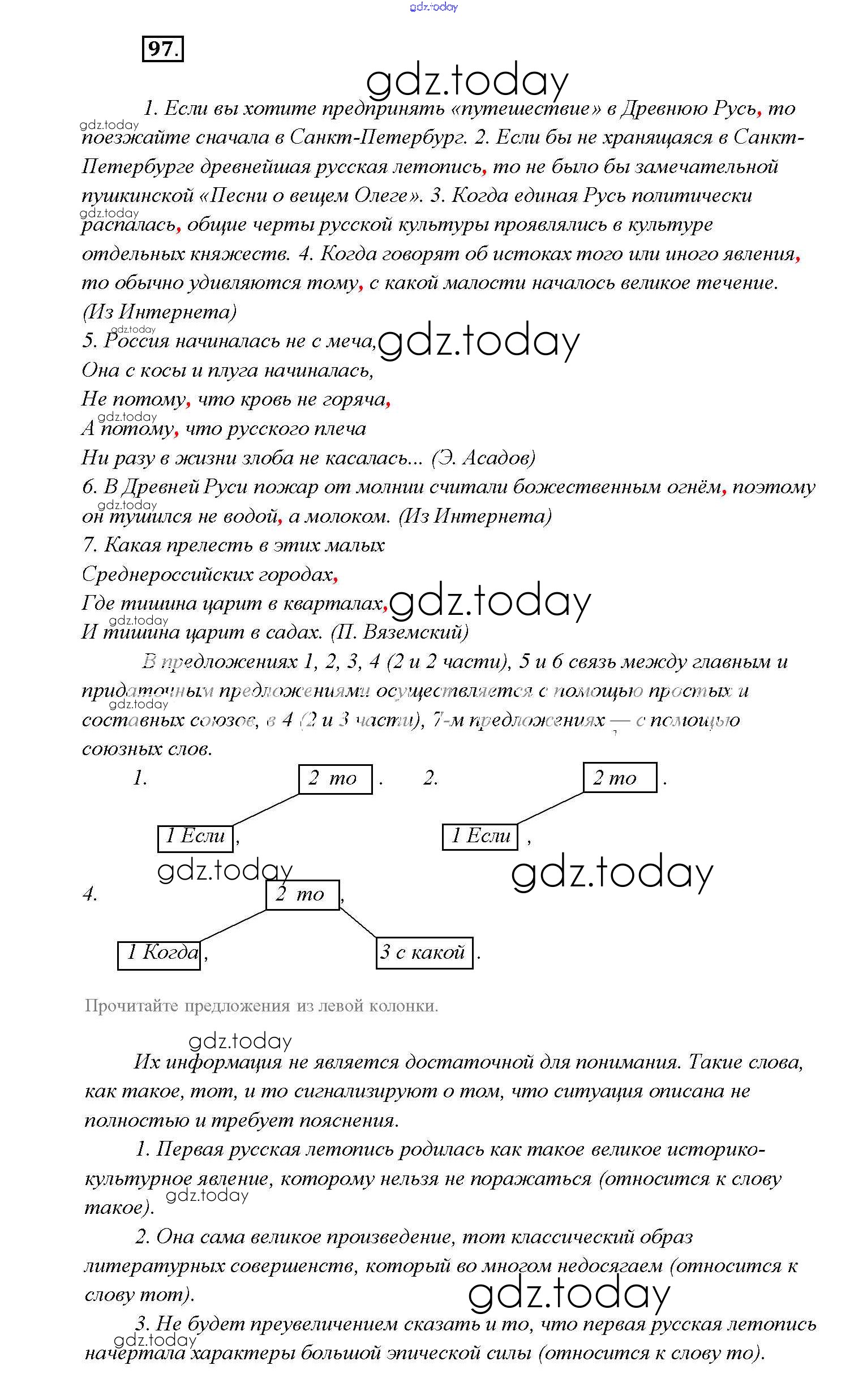 На страницах сайта gdz.today вы найдете учебный и вспомогательный материал, направленный на улучшения знаний школьной программы. ГДЗ - онлайн мир знаний Решение к упражнениям 97 Учебнику по Русскому языку для 9 класса Тростенцова, Ладыженская Просвещение 2014