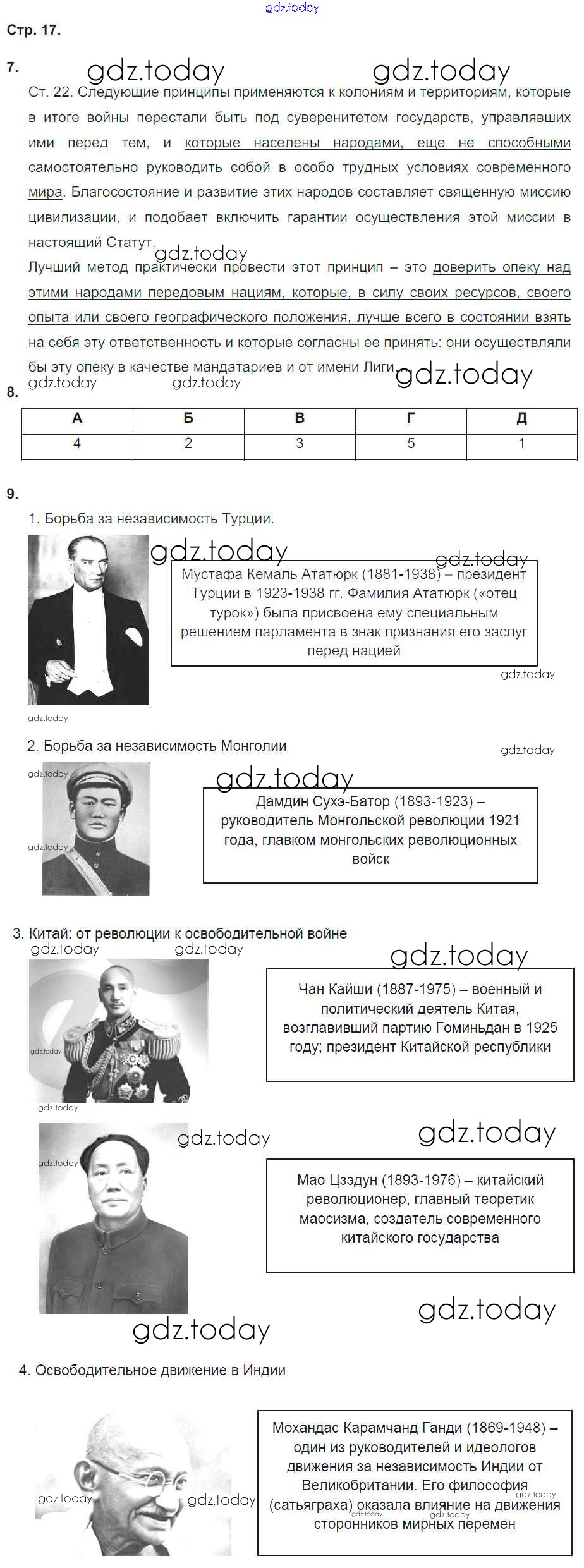 На страницах сайта gdz.today вы найдете учебный и вспомогательный материал, направленный на улучшения знаний школьной программы. ГДЗ - онлайн мир знаний Страницы (решение) 17 Рабочей тетради по Всеобщей истории для 9 класса Пономарев Дрофа УМК 2017