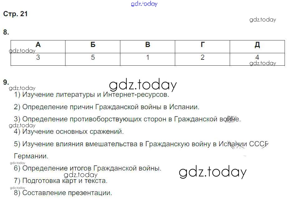 На страницах сайта gdz.today вы найдете учебный и вспомогательный материал, направленный на улучшения знаний школьной программы. ГДЗ - онлайн мир знаний Страницы (решение) 21 Рабочей тетради по Всеобщей истории для 9 класса Пономарев Дрофа УМК 2017