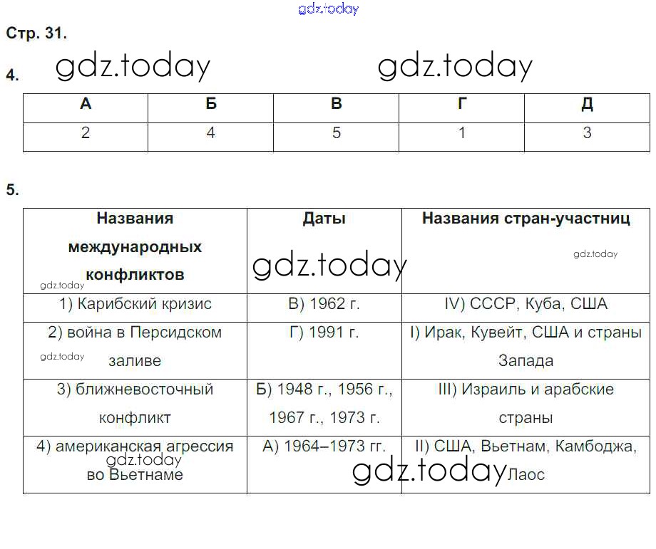 Ответы к Страницы (решение) 31 Рабочей тетради по Всеобщей истории для 9 класса Пономарев Дрофа УМК 2017