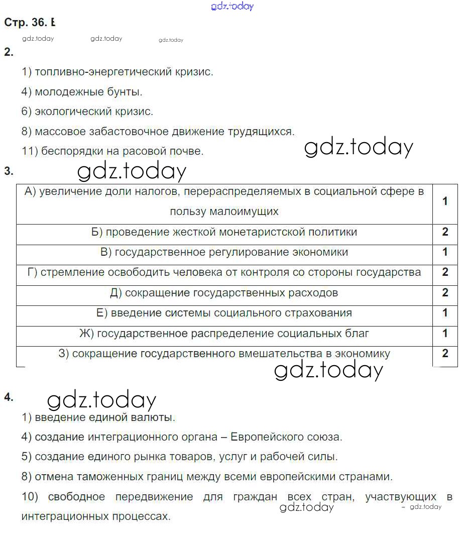 Ответы к Страницы (решение) 36 Рабочей тетради по Всеобщей истории для 9 класса Пономарев Дрофа УМК 2017